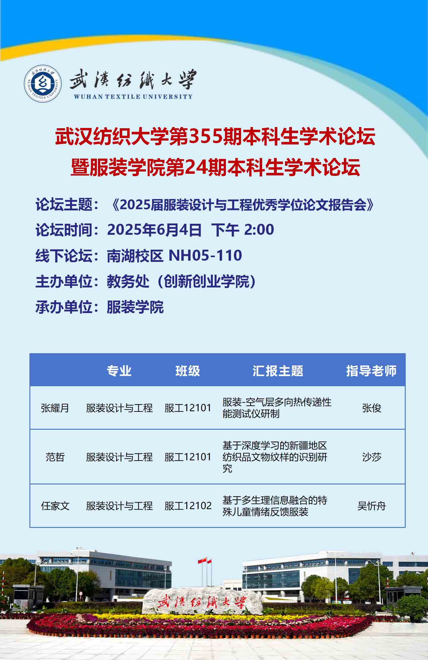 第24期“衣·学”本科生学术论坛。本次论坛邀请了三位服装设计与工程专业2025届优秀学位论文作者汇报了课题研究成果并分享了课题研究经验。论坛由服装设计与工程系主任张俊博士主持,百合小说