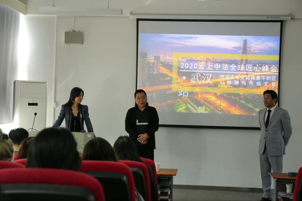 赵倩女士以中华传统文化与巨匠精神为切入点,结合自身在中法时尚文化交流和推广中的实践,围绕设计、教育、文化等主题与现场同学进行了深入的探讨和交流,让同学们在轻松愉快的氛围中感受设计的魅力、教育的意义和不同文化之间的融合和碰撞,她勉励同学们将传统文化和手工艺更多的运用到在设计中去。为了让同学们更直观感受中华传统文化和工艺在时尚领域的创新与发展,她现场还邀请了泰山文化创始人王岩先生为同学们介绍了“泰山玉”的发展历史、工艺饰品的研发团队和研发技术创新,以及如何让市场美学走进千家万户。