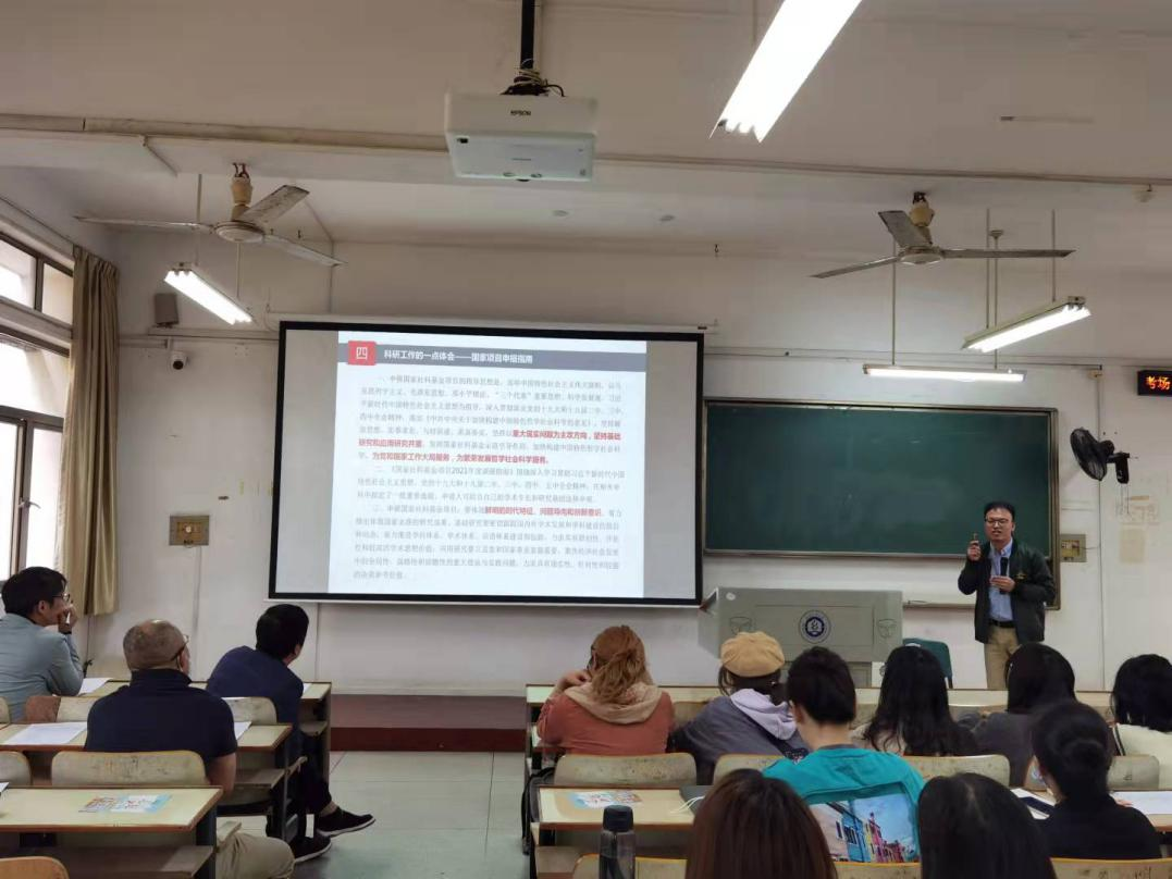 王柯老师以《设计﹒服饰﹒文化》为报告题目,结合自身研学经历,探讨了其对人文社科研究的看法。他从个人的教育和科研经历出发,介绍了围绕着设计艺术理论与服饰文化方面所取得的一些项目及成果,重点分享了其主持的国家社科基金冷门绝学研究项目《楚国服饰研究》的问题选择、研究思路及其理论与社会价值。王柯老师还结合其在省社科规划办挂职的经历,谈了他对国家社科基金项目管理工作的一些看法,并从国家社科基金项目申报指南、国家社科基金项目类别、国家社科基金申报流程以及申报注意事项等方面提出了建议与看法。