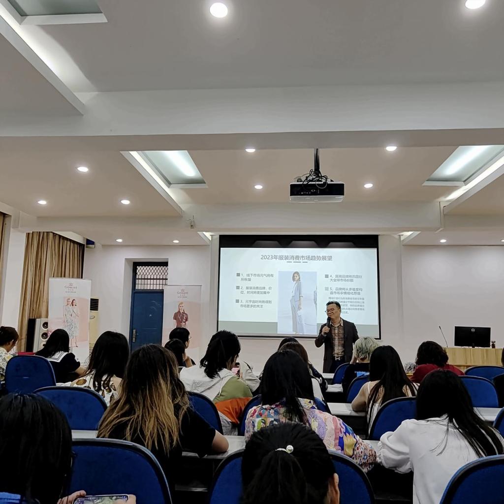 讲座围绕2022年我国服装消费市场特点、2023年1-3月中国服装行业经济运行情况及服装消费市场未来趋势展望、中国女装市场分布、中国女装上市公司2022年业绩、乔万尼品牌核心竞争力、乔万尼品牌百合小说及工匠精神、乔万尼品牌及品宣优势、乔万尼未来发展规划和乔万尼从2023年起每年感恩回馈社会9个方面内容展开。