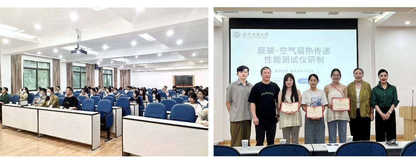 袁洁玲分享的优秀本科生论文题目为《服装-空气层热传递性能测试仪研制》。研究基于国标GB/T 11048-2008,自行研制一款服装-空气层热传递性能测试仪,通过高精度PID温度控制器、均匀传热的紫铜加热板、RS485通讯协议与LabVIEW程序等,与上位机电脑相连接,实现服装-空气层热传递性能动态监测,最后使用CFD数值模拟热传递过程,结果表明该热传递性能测试仪具有较为良好的准确性。