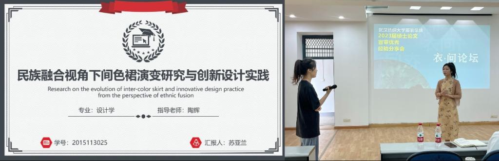 苏亚兰分享的优秀硕士论文题目为《民族融合视角下间色裙演变研究与创新设计实践》。文章以文献记载、壁画绢画中的隋唐襦裙服饰作为主要的研究对象,运用文献调查图像研究、考古学研究、实验研究等研究方法对间色福裙服饰进行复刻与创新设计实践从前期的资料收集整理,研究民族融合视角下间色裙的演变,并进行深入分类探讨数字化整理;中期选取段简璧墓室壁画中的红绿间色福裙进行复刻,客观的分析推断其款式、色彩、纹样等内容;后期理论结合实践,提取间色糯裙服饰元素,进行衍生设计实践。以此较好的整理一套完整的间色襦裙体系研究、复刻与设计实践方法,为后续学者们提供新的思路与方向。