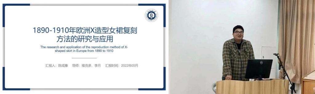 陈成豫以《1890-1910年欧洲X造型女裙复刻方法的研究与应用》为题进行分享。通过对欧洲女性服装复刻方法研究来解决,历史服装的复刻需要构建系统的“服装-纸样-人体”数据体系,而缺乏有关历史服装构造的系统和参数化信息阻碍了该方法的运用的问题。在一定程度上能够进一步挖掘欧洲历史服装的经典设计元素、造型特征和成型方法等,并为历史服装的复刻及相关领域提供了科学的理论基础及前端研究,具有较高的学术价值和应用实践价值。