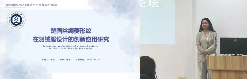 杨佳分享的优秀硕士论文题目为《楚国丝绸菱形纹在羽绒服设计的创新应用研究》。课题以传承与创新为出发点,在掌握楚国丝绸菱形纹的特征和羽绒服设计的基础上寻找两者有效结合处,以实现文化价值与商业价值的共存。将纹样运用于羽绒服,为现代羽绒服设计提供新思路,让羽绒服成为传承与创新传统文化的载体,引导消费者的民族认同感,达到相辅相成的效果。同时希望通过此文,使楚国丝绸菱形纹得到更多的关注,为现代羽绒服设计注入传统元素和新鲜血液,为今后的研究和应用提供一定的参考。