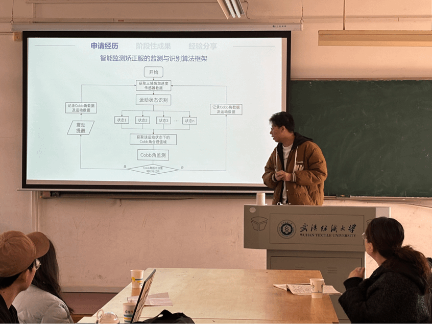纺织科学与工程专业的薛家和同学从申请经历、阶段性成果和经验分享三个方面进行展开。他提到,自己申请专利是由于自己的研究项目需要知识产权支撑,随后他进行展开,详细介绍了自己的智能监测矫正服项目,并展示了自己的阶段性成果。薛家和同学认为申请知识产权能够带来以下优势:提供大赛支撑、利于项目结项、影响企业评定、促进成果转化。最后,他对软件著作权、外观专利、实用新型专利、发明专利的特点和申请难度进行对比,并侧重对发明专利的申请流程与注意事项进行了详细介绍,让同学们对专利申请有了更深刻的认识。