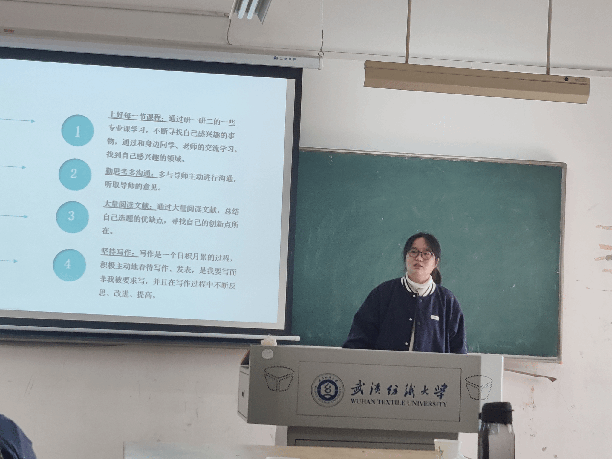 来自纺织科学与工程专业的黄卓同学深入浅出地分享了他个人论文写作经验。首先,他展示了自己在研究生期间取得的学术成果,为同学们树立了学术榜样。接着,黄卓同学详细解读了论文的构架,包括选题、摘要和引言的写作技巧。特别是在摘要部分,他强调了采用三段式的写作方式,涵盖目的、手段和结论。引言则被他解释为通过研究意义和现状引出论文主题,相当于简洁的文献综述。此外,黄卓同学分享了实验方法的撰写,包括实验材料和步骤,并强调最终结果的讨论和研究价值。最后,他介绍了一些常用的论文写作工具,如谷歌学术和Web of Science、Origin制图、DeepL翻译工具以及火龙果英文写作润色,为同学们提供了实用的工具和资源。他的分享不仅为同学们提供了宝贵的写作指导,也使同学们受益匪浅。