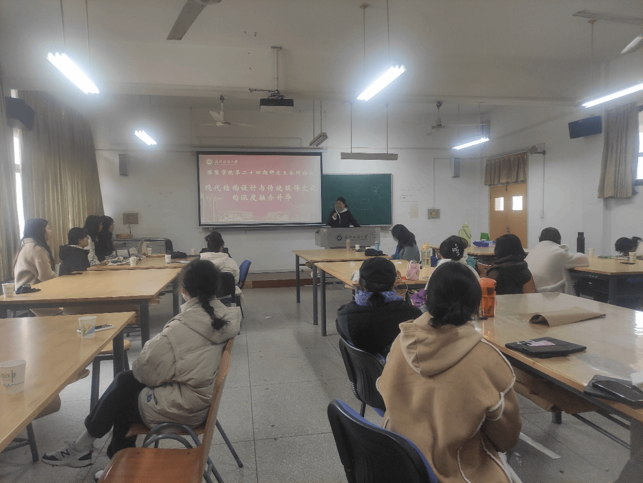第二十四期研究生衣·问论坛于12月13日上午,在综合楼601教室举办,此次论坛主题为现代结构设计与传统服饰文化的深度融合升华。由郑迎春同学、刁习羽同学以及冯悦同学进行分享。此次论坛由院办老师徐婷主持,点评嘉宾为尹志红教授和张莉副教授。