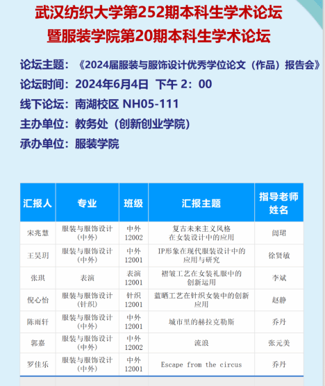 第20期“衣·学”论坛——优秀本科生学位论文(设计专场)在南湖校区NH5111教室顺利举行,七位本科生代表分享自己的优秀毕业论文。本次论坛由百合小说