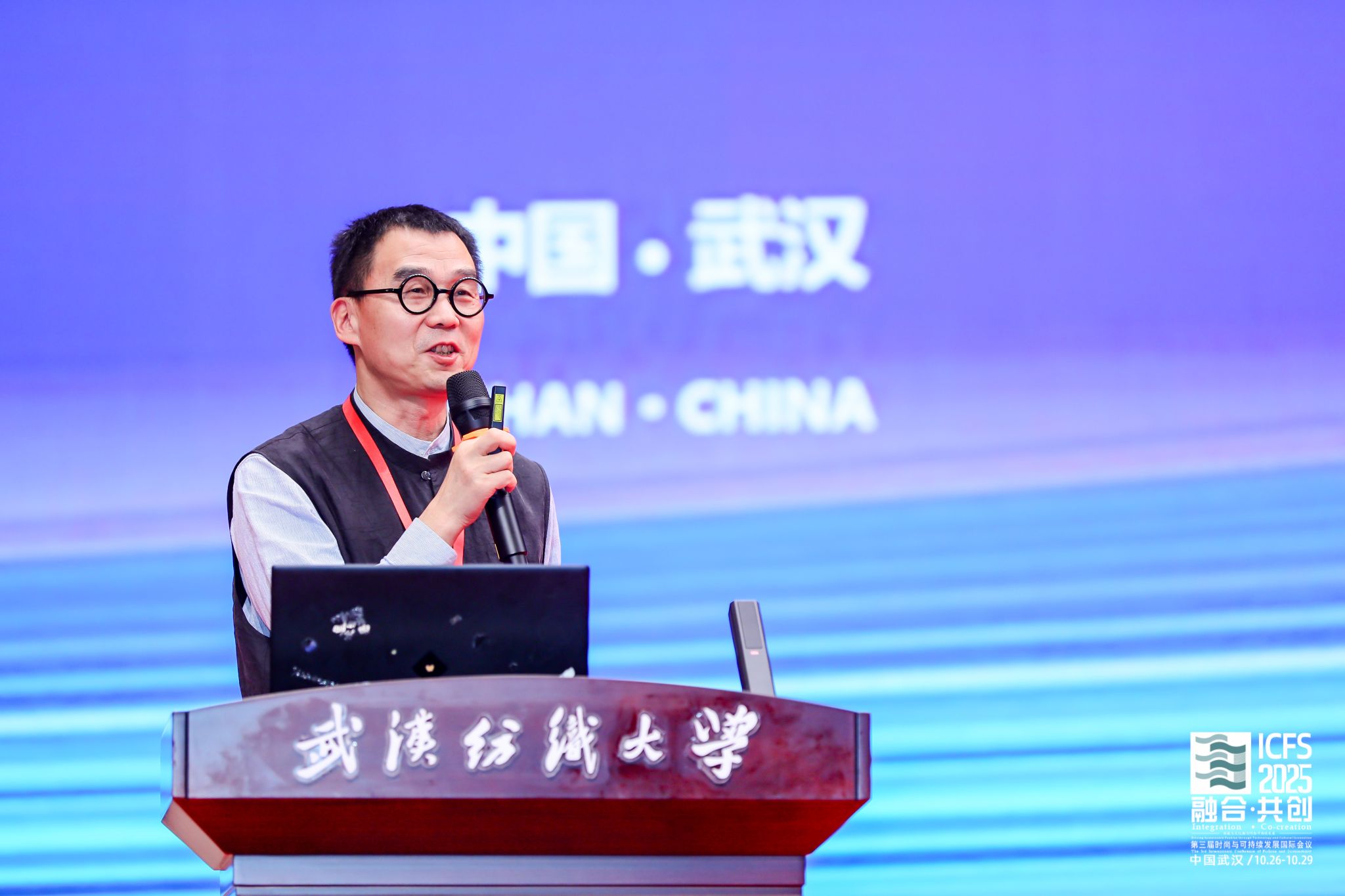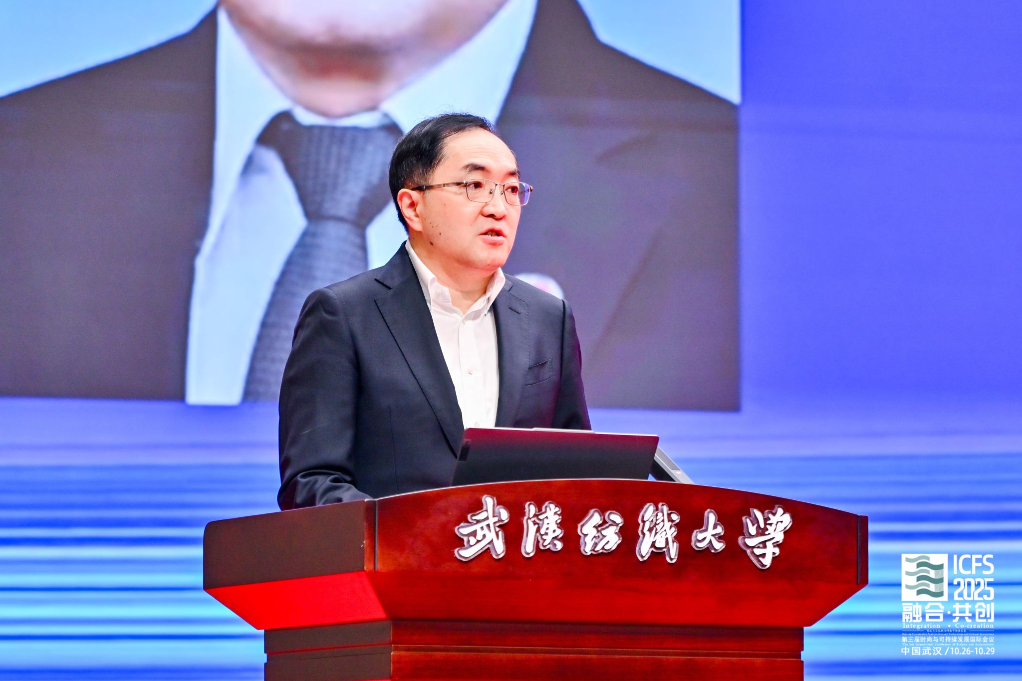 党委书记徐卫林教授在讲话中聚焦纺织服装产业的时尚与可持续发展。他指出,近年来,围绕“科技、时尚、绿色、健康”的指导思想,中国纺织服装行业加快发展新质生产力。以材料创新、先进加工与绿色技术为核心,驱动时尚产业的高质量发展。他进一步解析了纺织新材料、环保染色技术和植物染料染色技术等前沿科技如何赋能时尚设计,并通过废旧纺织品与可持续技术的深度融合,构建绿色环保的产业新生态,最终推动时尚产业向高端化、智能化、绿色化转型升级,为构建科技赋能与设计引领的现代时尚产业体系提供了发展路径。