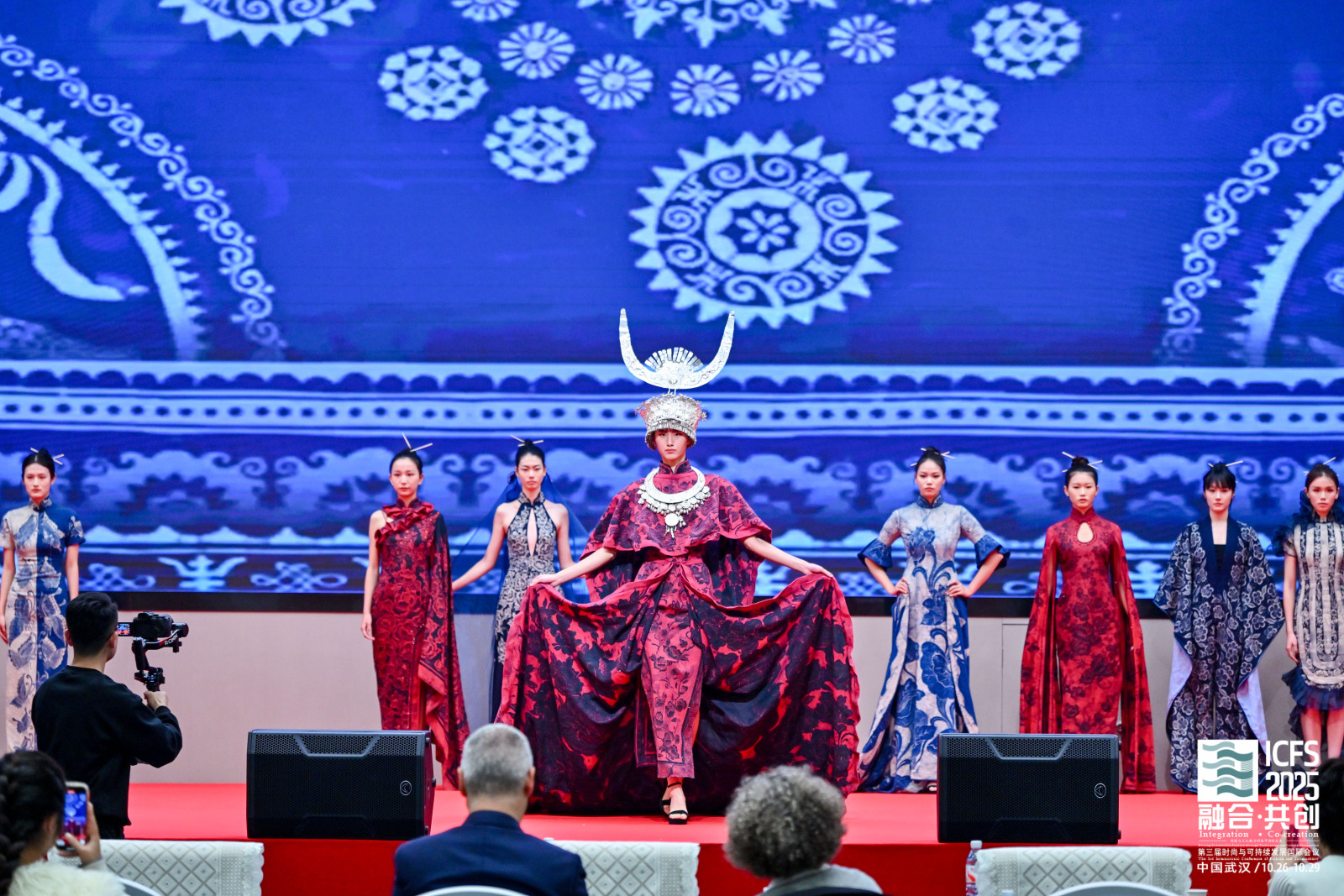 为案例,阐释了依托“新时尚科技、新生活风尚、新文明传统”三大维度的总体方案。通过引入“数智+”理念与生成式设计,使传统图案与服装焕发新生,构建起科技、生活与文明荣融共生的可持续时尚新生态。