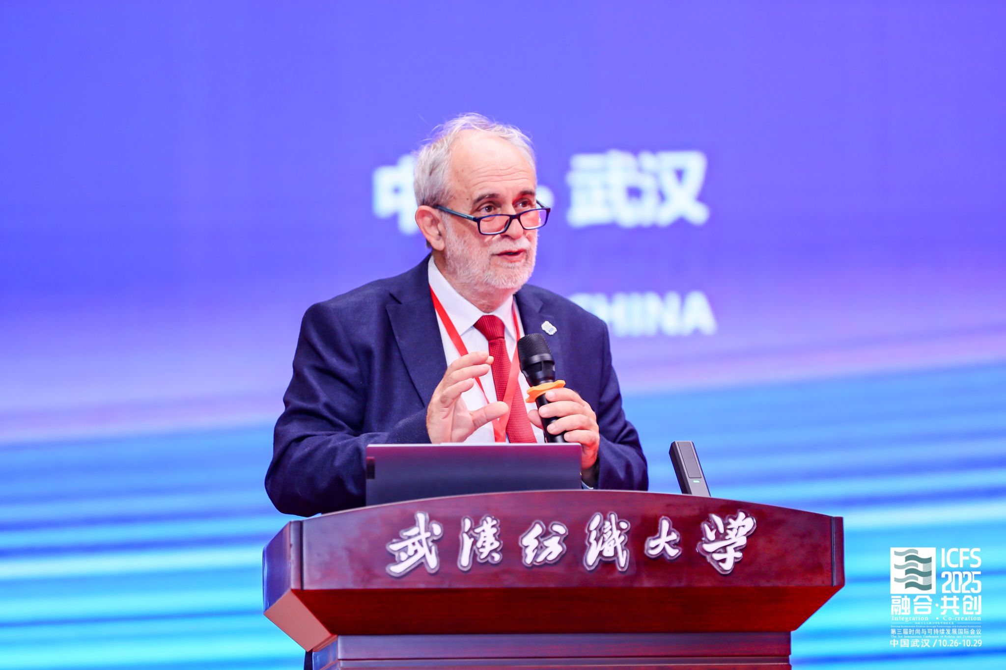 Savvas Vassiliadis教授在报告中探讨了智能纺织品与能量采集技术为时尚设计领域带来的新挑战。他指出,基于热电、压电等原理的能量采集系统是智能纺织品的核心模块,其与服装的深度融合在提供功能的同时,也显著影响了设计流程,限制了美学表达的多样性,导致不同设计师的作品趋同。他强调,这一现状对设计过程提出了更高要求,设计师需在技术约束下进行创作,这既推动了更友好、易整合元件的研发,也凸显了培养兼具技术背景与创新能力的设计人才的重要性。