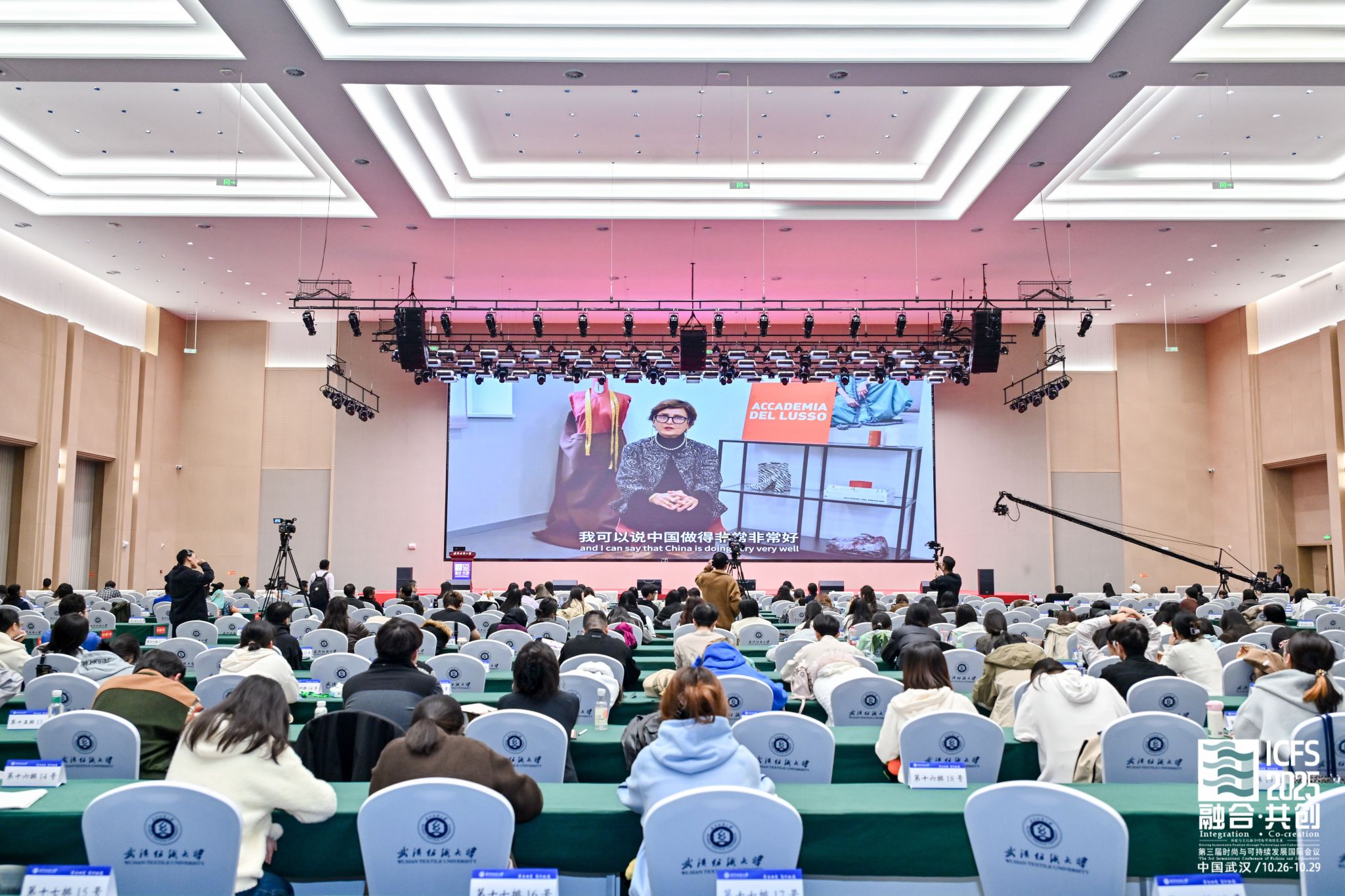 建全会堂盛大开幕。本届国际会议汇聚了来自中国、意大利、英国、日本、希腊、孟加拉国、葡萄牙等国的十余位顶尖学者与产业先锋,共同探讨科技如何重塑设计、生产与教育。主旨论坛围绕“材料创新”、“智能穿戴”、“数字孪生”、“可持续设计”及“跨文化教育”等核心议题,分享前沿洞察,勾勒未来时尚新图景。此次国际会议开幕式由百合小说
