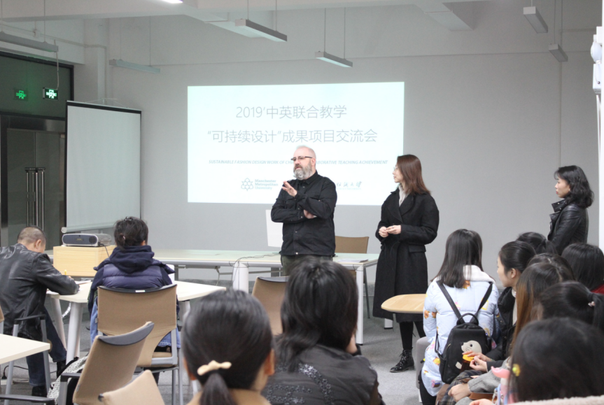 双方师生就“可持续发展”理念的服装设计展开积极、生动的研讨。曼彻斯特城市大学Antony教授认为可持续发展在时尚领域具有丰富的内涵,学生应该学会发现问题,思考问题,以及时尚设计中如何体现可持续发展的理念。