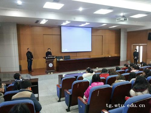 院长熊兆飞教授对河本教授一行参观访问我校表示热烈欢迎,副院长陶辉教授主持报告,日本文化学园大学学生课科长宫本朱老师担任报告翻译。