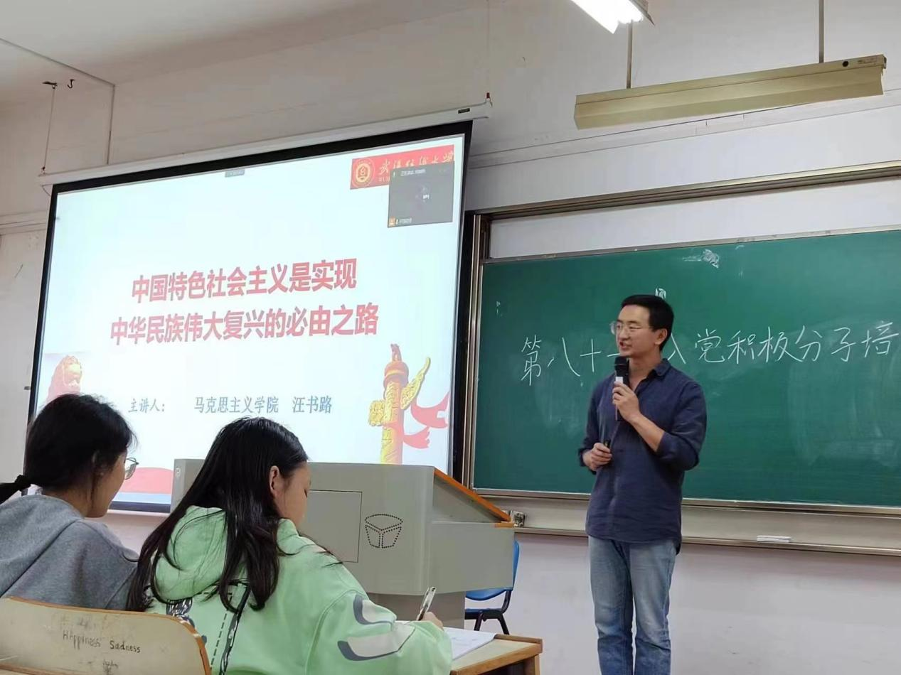 本次党课,汪书路从三个方面展开论述:民族复兴必由之路的历史根基;民族复兴必由之路的理论依据;民族复兴必由之路的实践基础。他强调,历史和实践已经充分证明,只有中国特色社会主义道路才能够引领中国进步、实现人民福祉。汪书路通过列举大量史实,详细论述了民族复兴必由之路的实践基础,他号召全体积极分子要要埋头苦干、担当作为,不断谱写新时代中国特色社会主义新篇章。