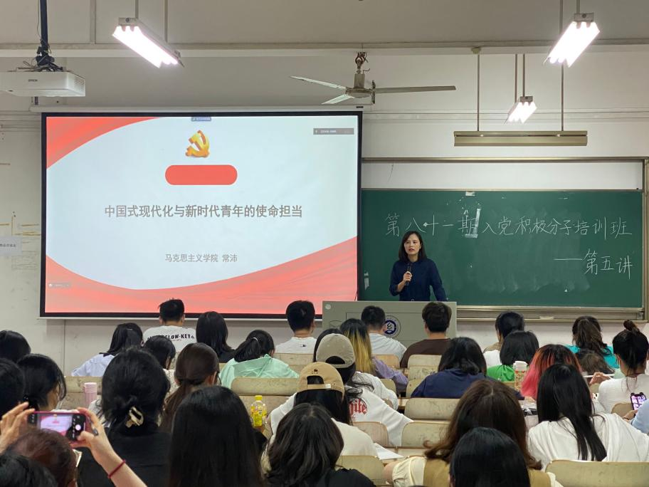 在综合楼5309、5310教室举行第81期入党积极分子培训班第五课,本次党课由马克思主义学院常沛老师主讲。