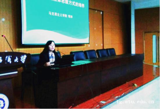 常老师的授课主题围绕着全面依法治国与大学生法律思维方式的培养来展开,为同学们讲述了全面依法治国的背景、目标、地位以及我们当下要实现这个目标需要完成的重大任务。常老师的授课与时政结合,同时引入大量实例,生动并且具有吸引力,感染着现场的每位同学,使得现场掌声连连。