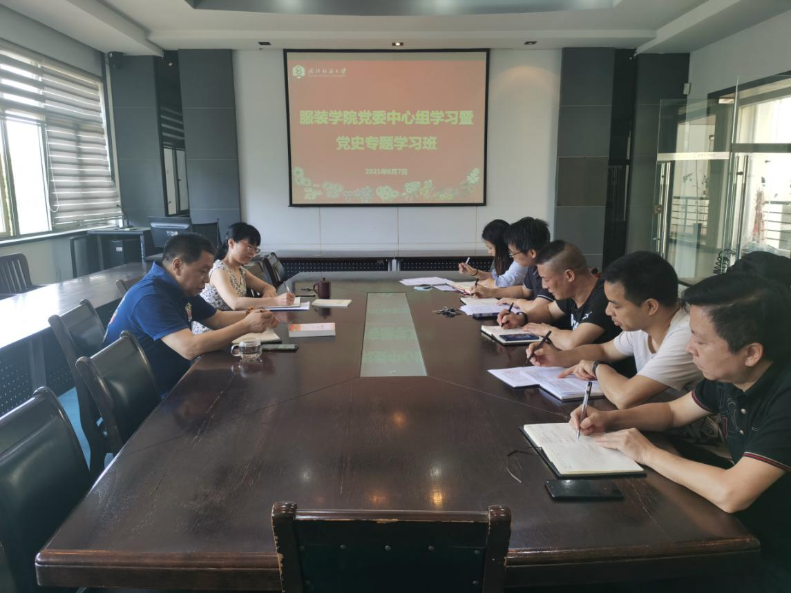 6月7日,服装学院召开党委中心组学习暨党史学习教育读书班集体学习,会议由学院党委书记熊兆飞主持,学院党委委员、班子成员、部分支部书记代表参加了学习。