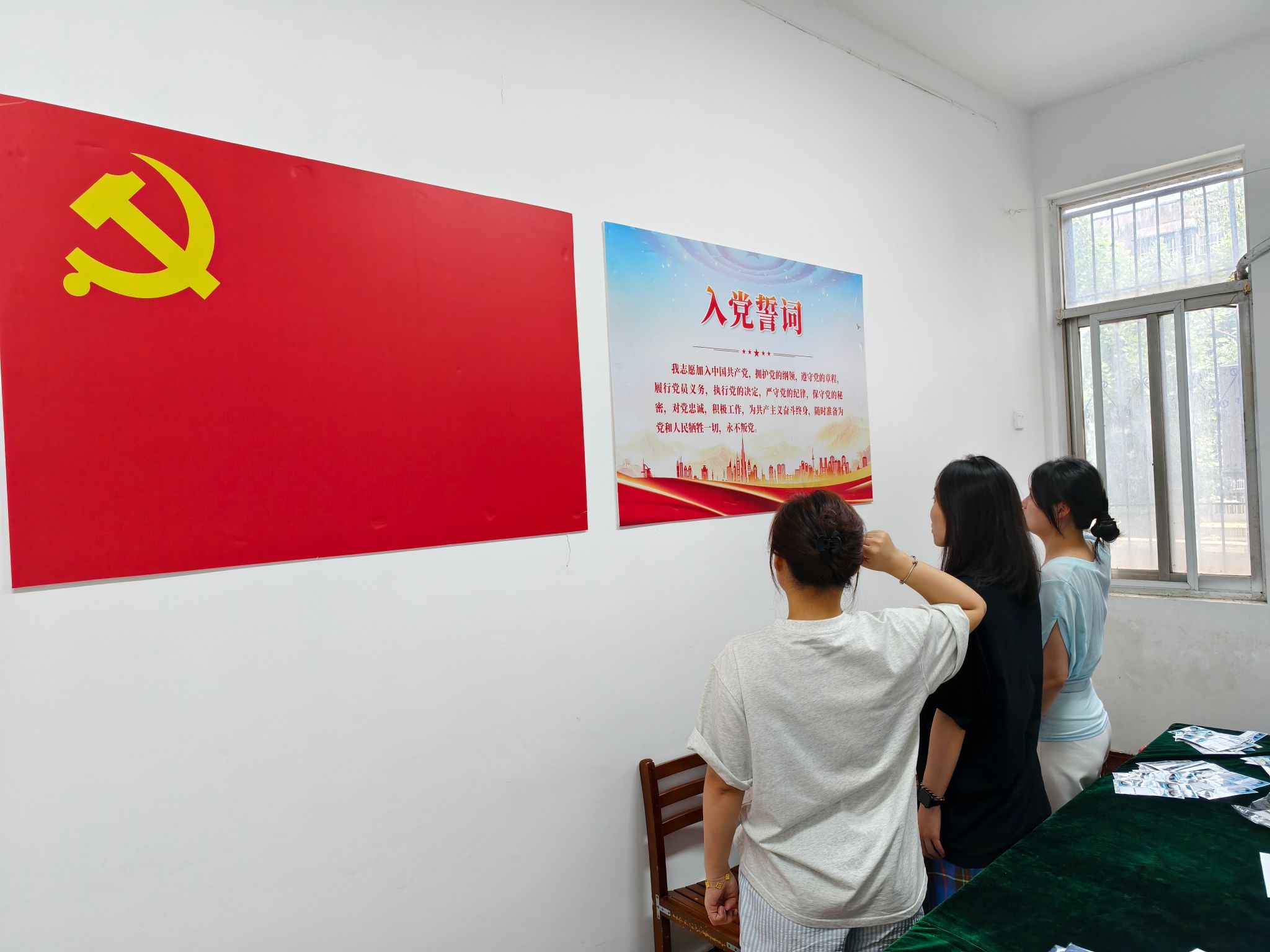 各支部宣誓教育活动在庄严的《国歌》声中拉开序幕。宣誓仪式上,各支部党员面向鲜红的党旗,怀着激动的心情举起右拳,庄严宣誓和重温入党誓词。