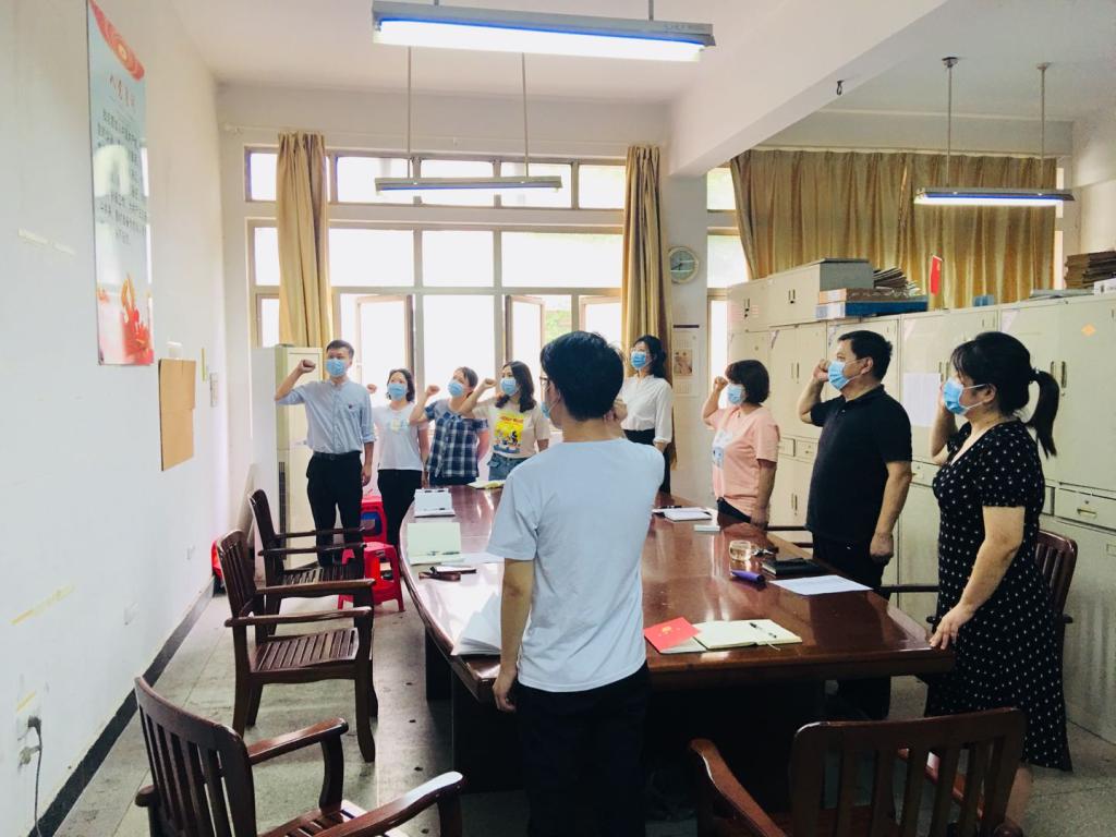 本次活动共分为三项议程。第一项议程,支部组织委员李姝媛同志向支部党员公布了近一年的党费收缴及使用情况。第二项议程,支部全体党员在支部宣传委员尹俊华同志的带领下一同重温了入党誓词,提醒各位党员同志要坚定理想信念,牢记党的宗旨,牢记共产党员的使命。