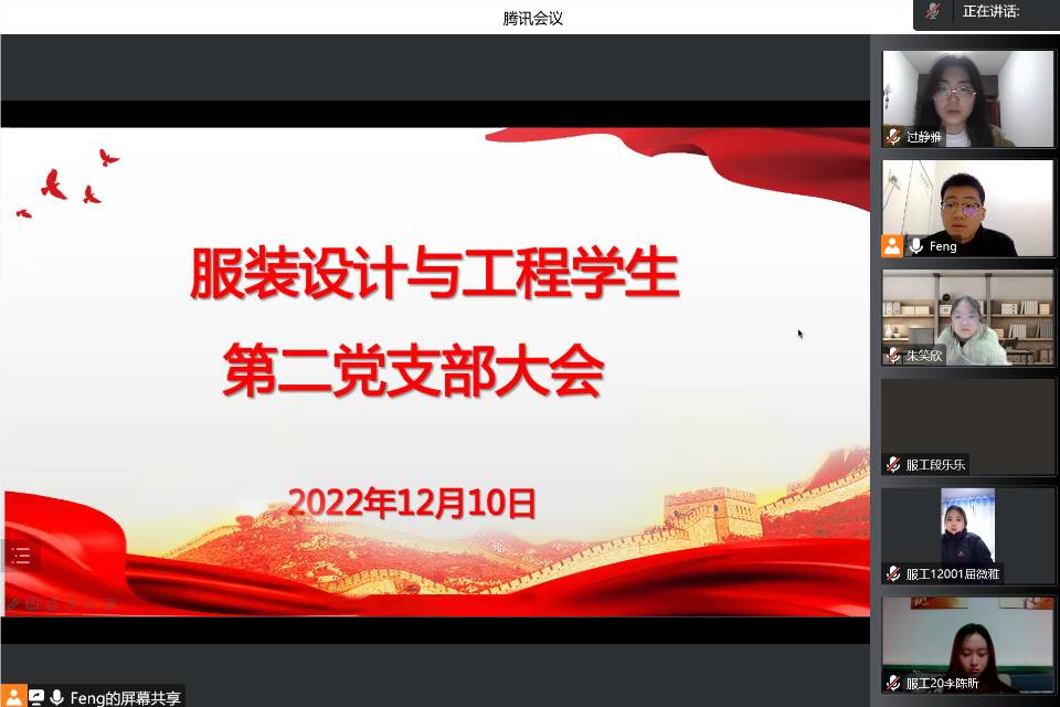 服装设计与工程学生第二党支部在线上召开支部党员大会,支部全体党员和发展对象参加会议,大会由支部书记冯江主持。