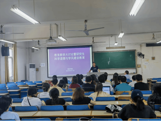 “教育教学大讨论暨研究生科学道德与学风建设教育大会”于5月17日上午在尚知楼508教室顺利开展。学院党委书记杜新年、副院长江学为、研究生辅导员夏菡以及2024届毕业研究生参加会议,会议由夏菡主持。