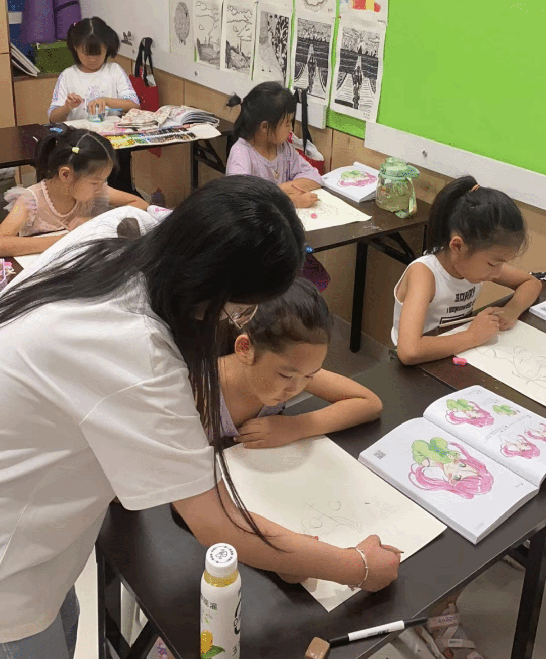 (本科生支部党员崔楚豫为笔架山社区中小学生提供素描指导)