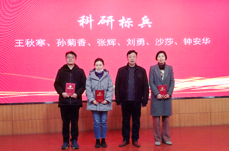 学院从2021年为学院在各项事业上上取得突出成绩的教职工中评选出了教学标兵、科研标兵和奉献服务标兵,并进行了表彰,号召全院教职工向先进学习,为学院的发展贡献力量,程碧海书记为获奖教职工颁发荣誉证书。