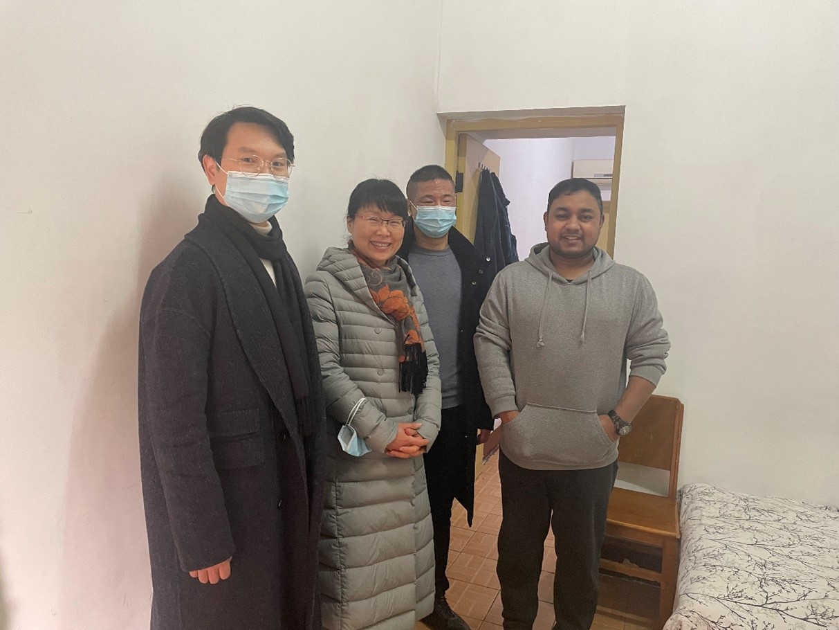 学院领导同时慰问了我院孟加拉籍教职工米哈斯,代表学院提前传达了中国的新年的祝福,并告知学校疫情期间对外籍教师的管理要求,米哈斯对学院的慰问表示感谢,表示一定会遵守学校规定,积极配合做好新学期的工作。