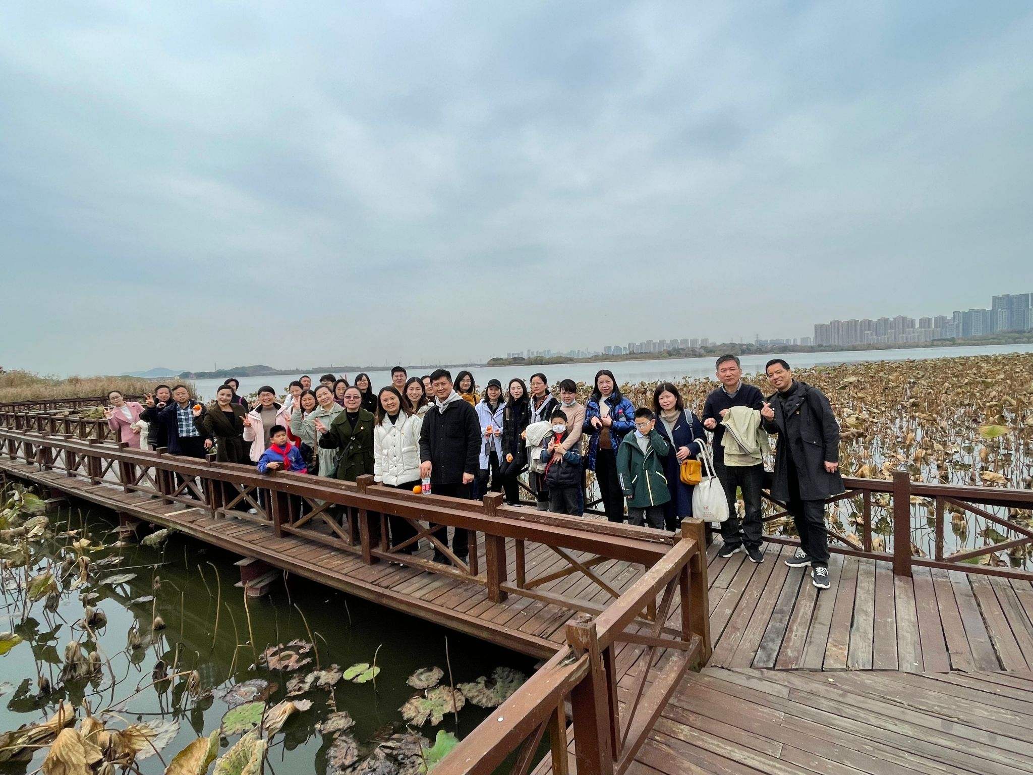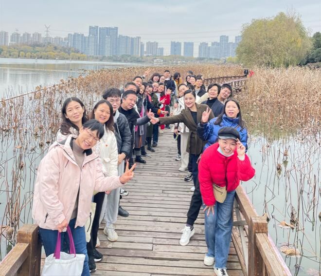 工会组织全体教职工赴武汉市蔡甸区后官湖开展党史学习及徒步活动。