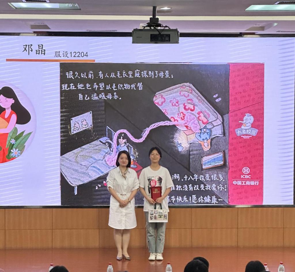 一等奖获得者张琳萱、彭文涛和二等奖获得者樊文静作为获奖学生代表,分别分享了自己的创意和想法、创作心得、以及和母亲的故事。