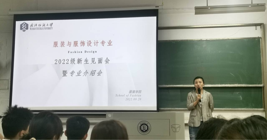 9月29日上午,訚珺老师为服装与服饰设计专业新生展开了相关的专业教育, 訚老师为新生播放了2021级优秀毕业生在北京时装周的秀展,并从“专业是什么”、“专业如何学”、“学习后干什么”等方面展开了讲述,訚珺强调学生应具备“知识、能力、品格”三大原则和审美判断、设计创造、动手制作、信息技术应用以及终身学习的五大能力,并重点指出了“实践”对于学好专业的重要性。