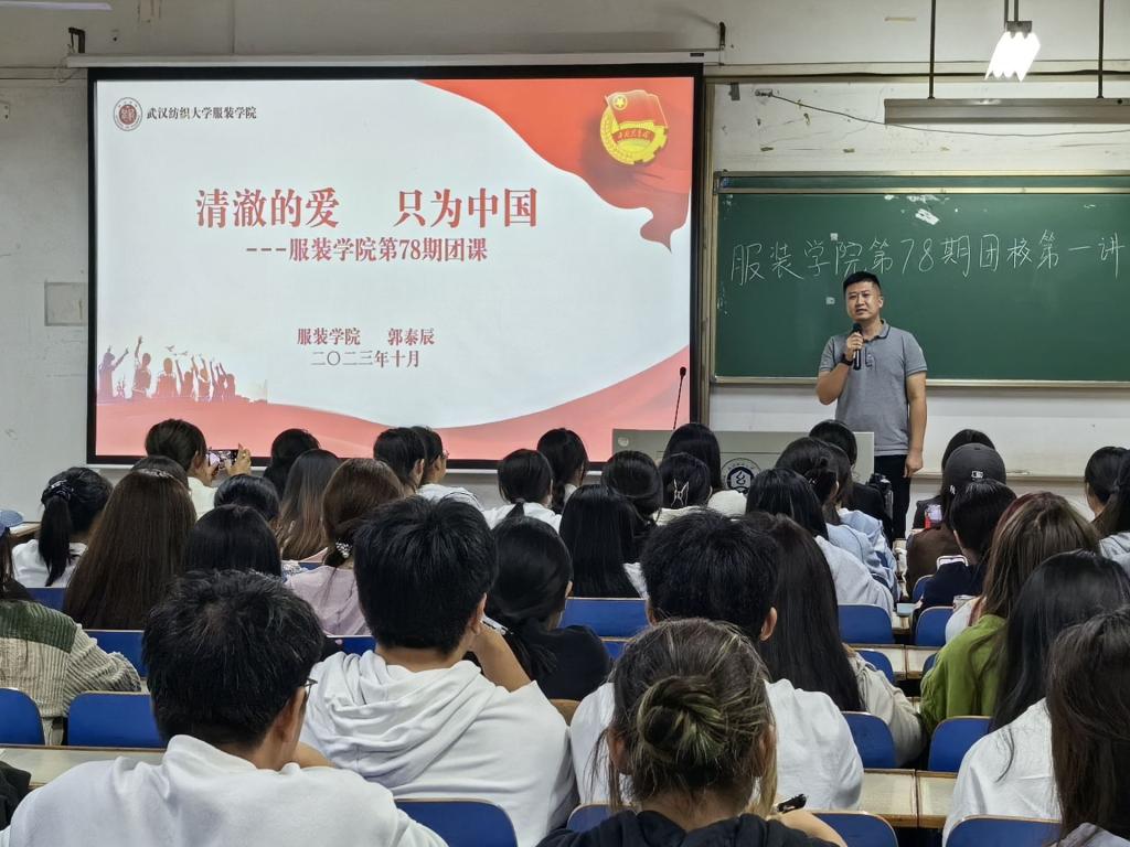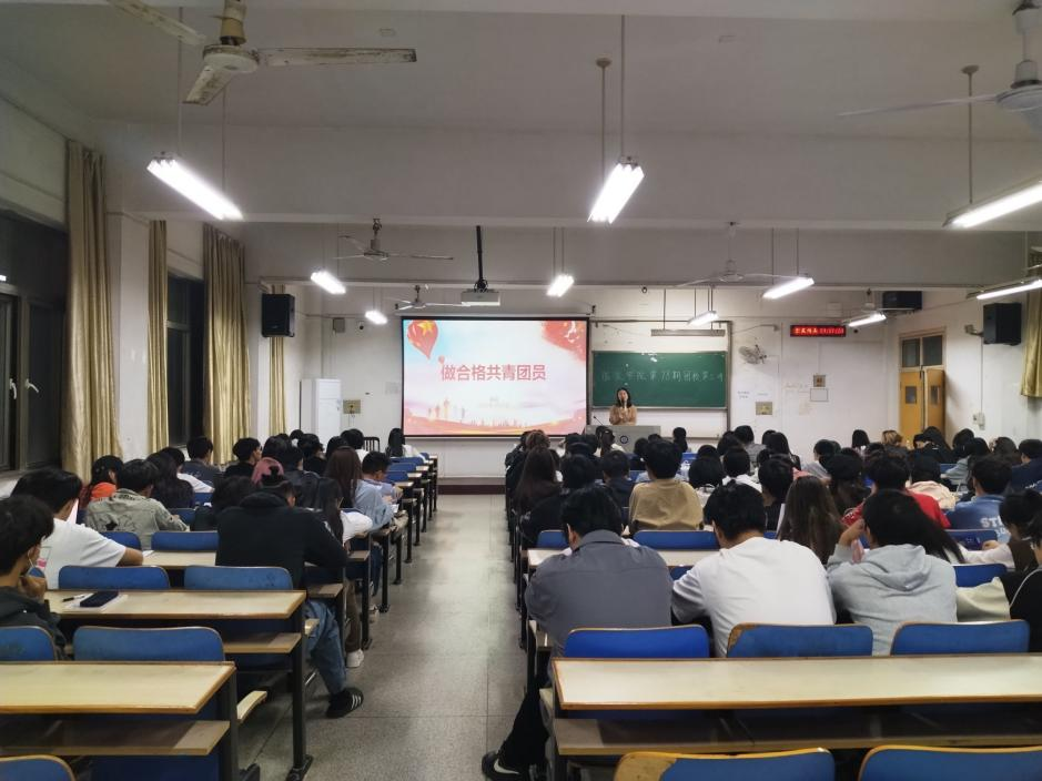 党委副书记郭泰辰老师主讲,他以“清澈的爱,只为中国”为主题,从“回顾百年团史”、“追寻信仰之光”、“勇担青春使命”三个方面进行讲解。接着郭泰辰老师从自己经历出发,要求同学们淬炼个人思想品德,增强作为青年学生的使命感和责任感,在心中种下了一颗坚定不移跟随党走的种子,同时号召同学们积极参与校园和社会志愿活动,将小我融入大我,将个人理想目标与祖国前途发展相结合,充分奉献个人青春力量。