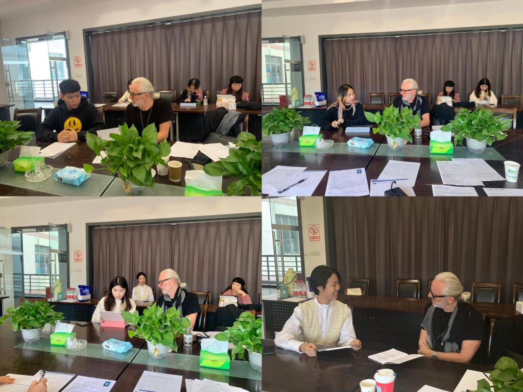 下午,Mr.Neil在学院会议室对学生进行作品集面试。参加面试的同学带自己的作品集,一对一Neil讲解自己的设计主题、灵感来源、调研过程等。Mr.Neil对同学们的作品赞不绝口,他认为这些作品的灵感从不同的角度切入,非常有创意,也对同学们提出了改进的建议,他表示和同学们的交流非常愉快。2020级服装与服饰设计专业张雨曦,服装与服饰设计(中外)专业赵一鸣、尚佼杨、冯娴颖和表演专业熊亦菲现场拿到了Mr.Neil发出的预录取offer,赵一鸣、张雨曦两位同学还获得了Future leader奖学金
