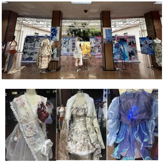 中外12103班《服装专题设计》课程展在尚知楼一楼大厅展出,此次展出的作品由乔丹副教授悉心指导,从28套学生设计的作品中挑选了10套优秀作品进行展出。