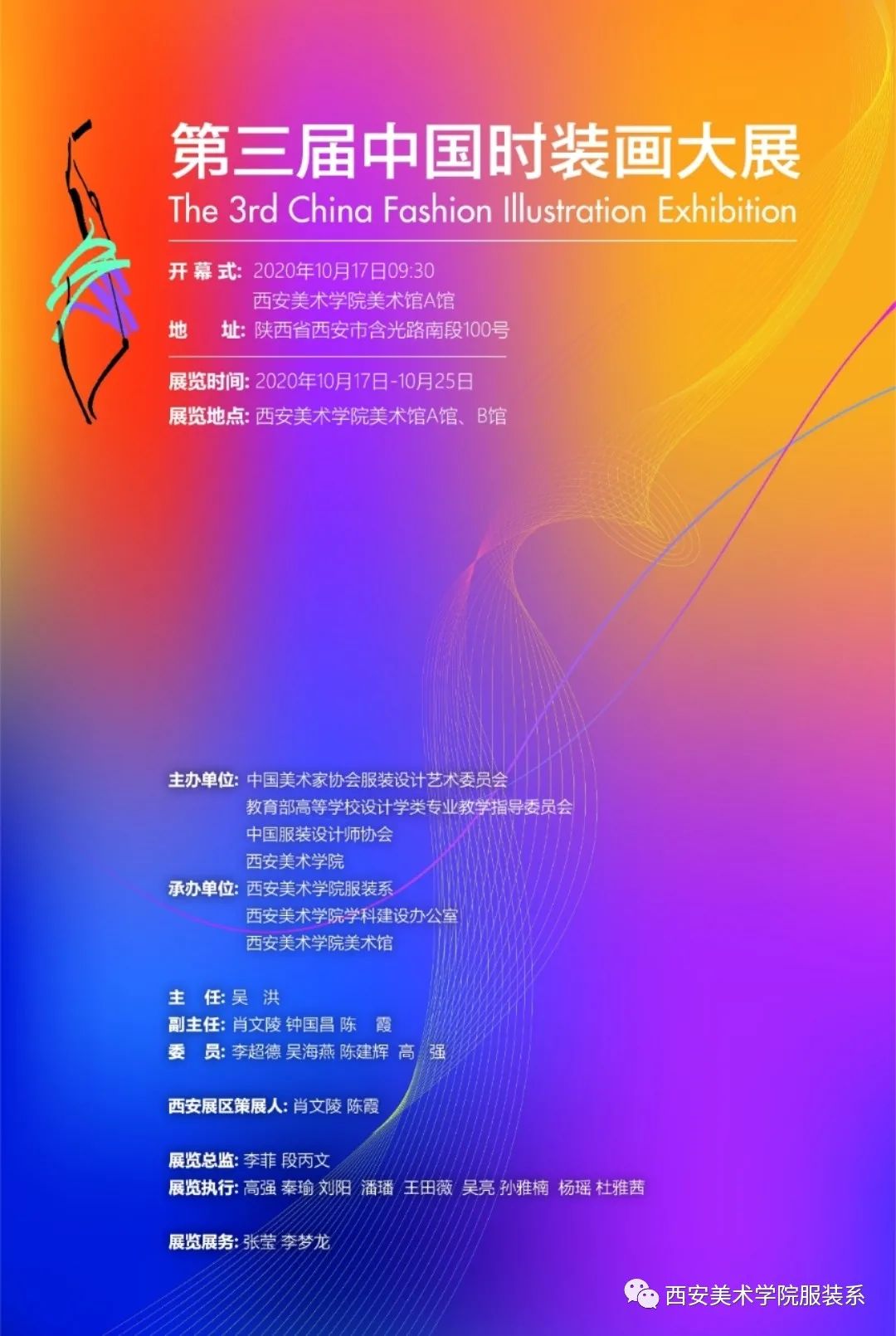 10月17日上午,由中国美术家协会服装设计艺委会、教育部高等学校设计学类专业教学指导委员会、中国服装设计师协会、西安美术学院主办、西安美术学院服装系、西安美术学院学科建设办公室、西安美术学院美术馆承办的“第三届中国时装画大展”开幕式及研讨会在西安美术学院美术馆A馆举行。