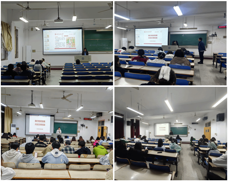 学生手册》从学习纪律、生活纪律、行为纪律三方面进行了校纪班规的宣讲。向同学们强调要按时上课、不迟到、不早退、不旷课。认真听讲,积极参与课堂讨论,按时完成作业和实践报告。遵守考试纪律,诚信考试,不作弊、不抄袭;保持个人卫生和宿舍卫生,维护良好的生活环境。遵守作息时间,按时起床、就寝,保证充足的睡眠。爱护公共财物,不损坏校园设施;尊重师长,团结同学,文明礼貌待人。不打架斗殴,不酗酒吸烟,不参与赌博等违法违纪行为。遵守网络道德,不传播不良信息,不发表不当言论。