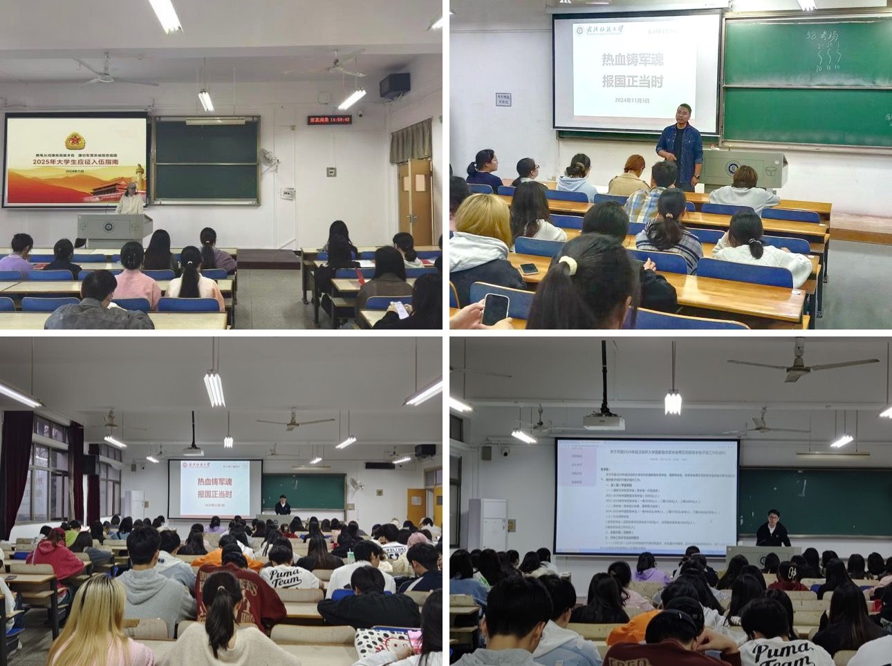 老师们围绕部队简介、应征入伍基本条件、入伍流程、大学生参军特别优惠政策、军营生活、征兵防诈骗等六个方面,进行了2025年大学生应征入伍指南宣讲,使同学们了解到中国人民解放军的组成、入伍各项标准、优惠政策;同时,强调征兵防诈骗工作,要求学生及时了解掌握当地的征兵动态,勿轻信熟人的推荐和介绍,提升辨别能力。