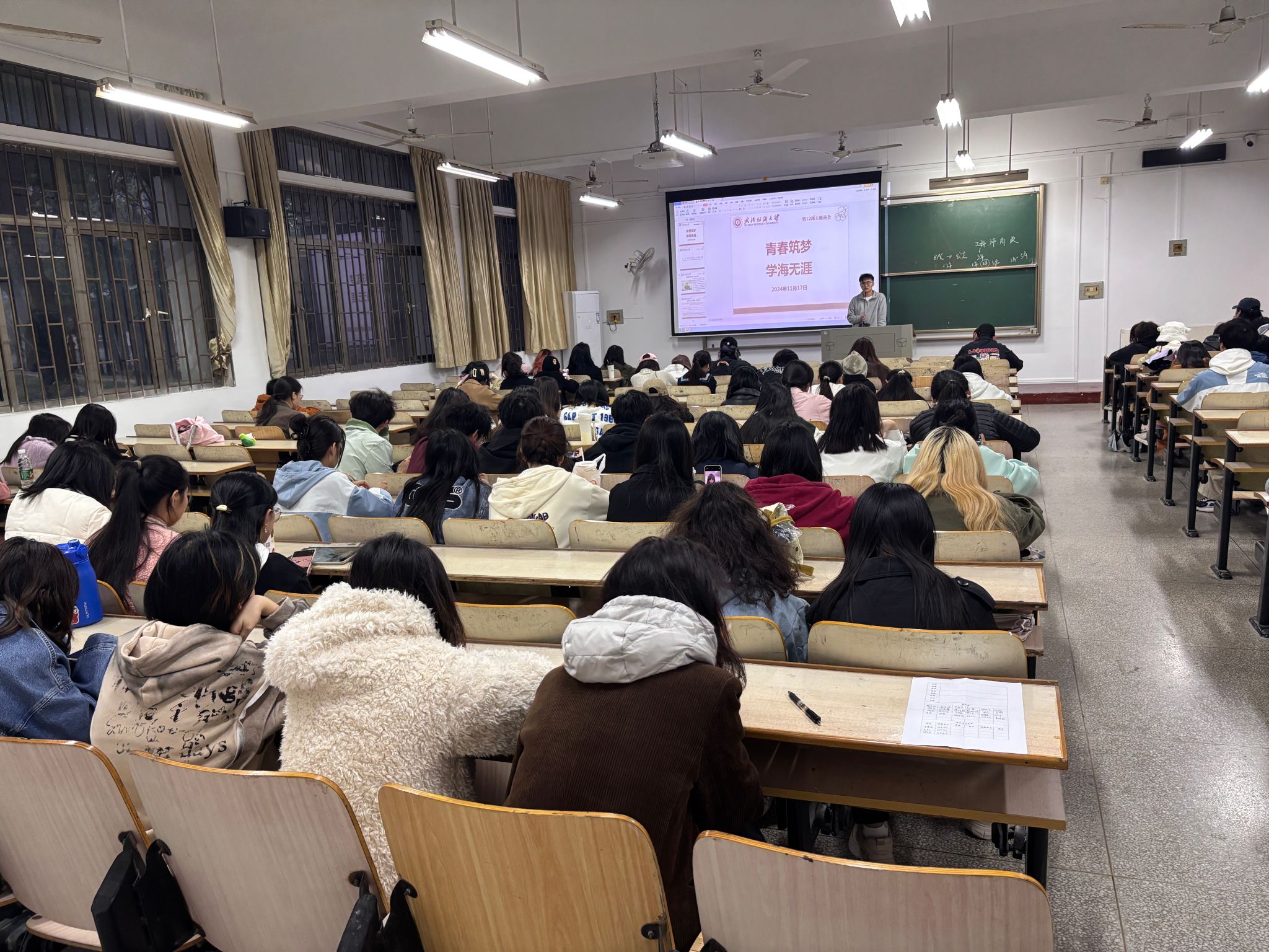 班会还恰逢全国消防宣传月,借此机会,班主任和辅导员们普及消防知识,介绍宿舍、实验室、公共场所的消防注意事项等,提升学生的火灾预防与应急处置能力,共同营造纺大安全校园环境。