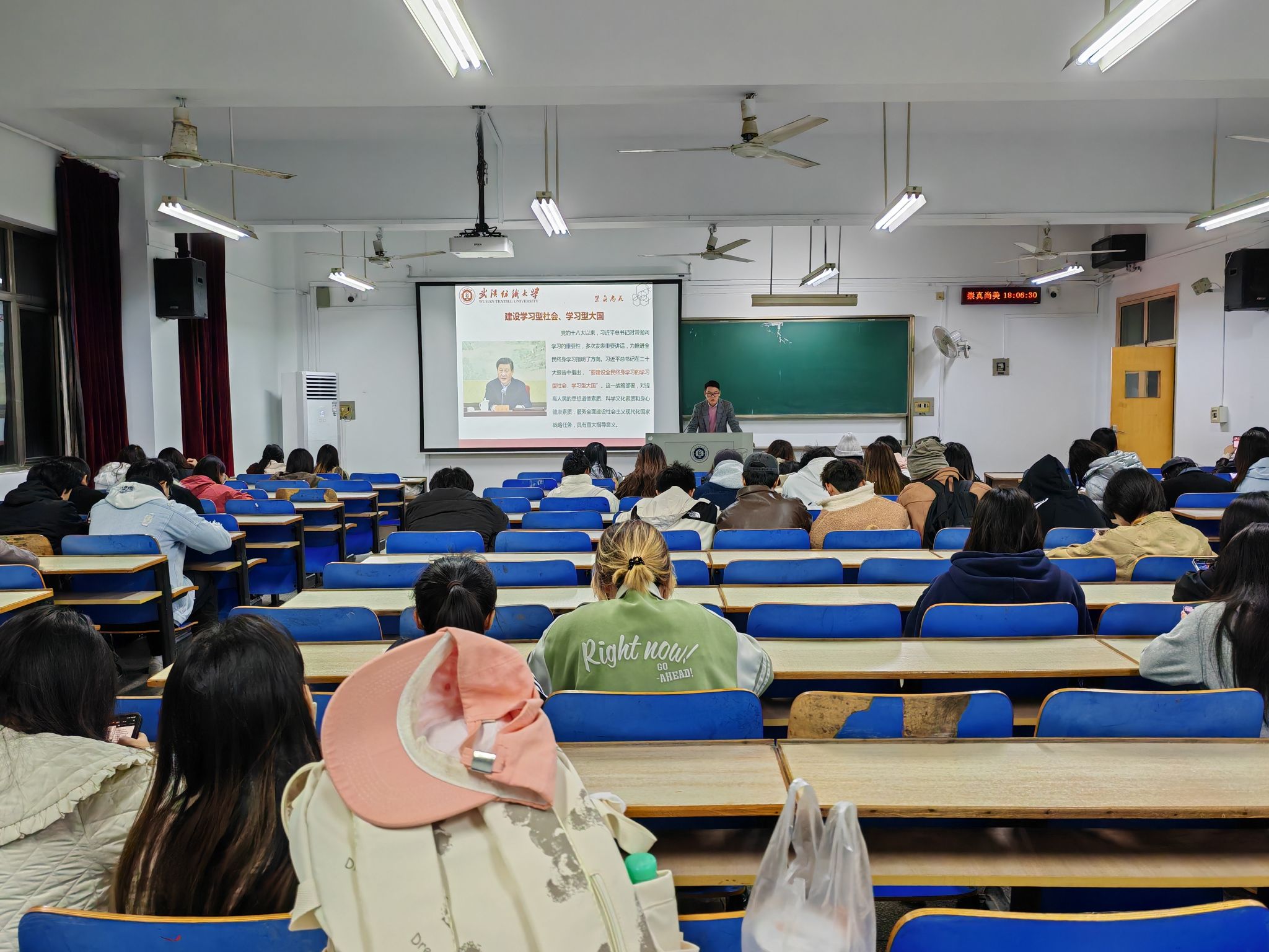 会上,班主任和辅导员首先对“建设学习型社会、学习型大国”这一战略部署进行解读,并且强调学习的重要性,同学们深入探讨学习的意义与价值,并纷纷表示在未来的生活中要将学习贯穿一生,不断提升自身综合素质。