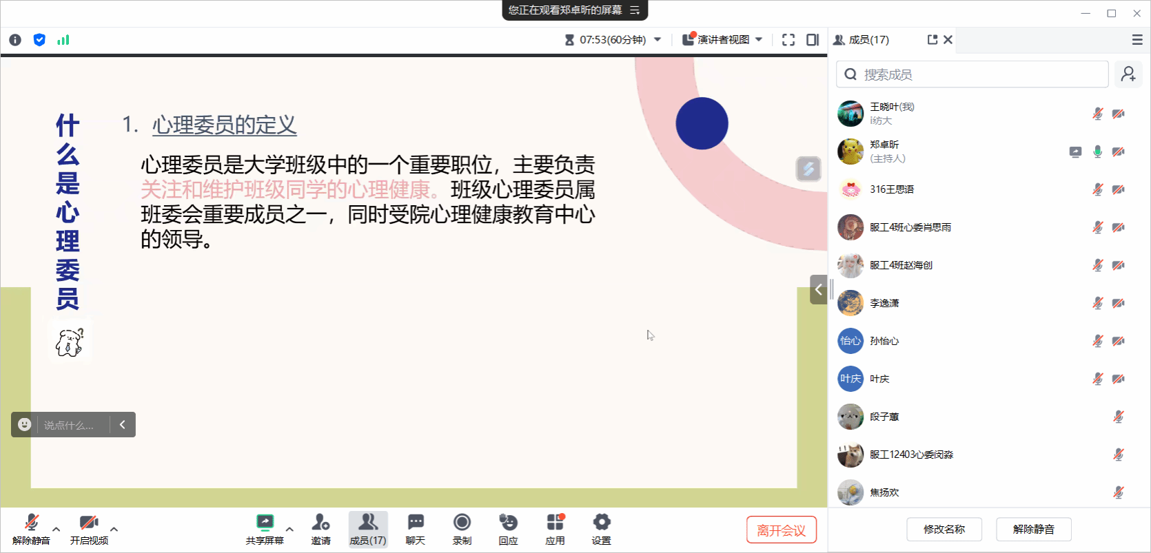 心理工作站在线上举办了大学生心理委员新生团辅,心理工作站成员和各班心理委员参加了本次活动。