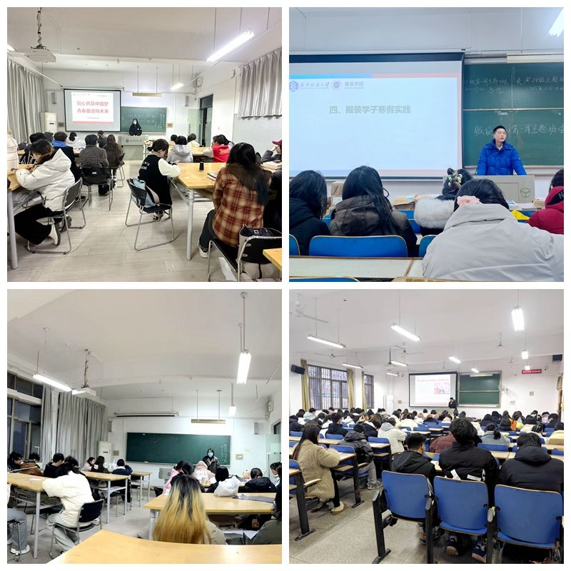 班会上,辅导员和班主任们强调,新时代大学生需肩负社会责任,关注社会热点。从西藏地震救援中的青年志愿者事迹,到黄旭华院士的科研精神,再到电影《哪吒2》中“踏出一条路”的革新宣言,老师们呼吁学生将个人成长融入国家发展,在传承与创新中追求卓越。同学们纷纷表示将牢记老师们的嘱托,主动关注社会热点,积极投身社会实践。此外,寒假社会实践分享环节中,学生代表讲述了深入乡村调研、参与非遗文化保护的见闻,展现了纺大学子的责任担当。