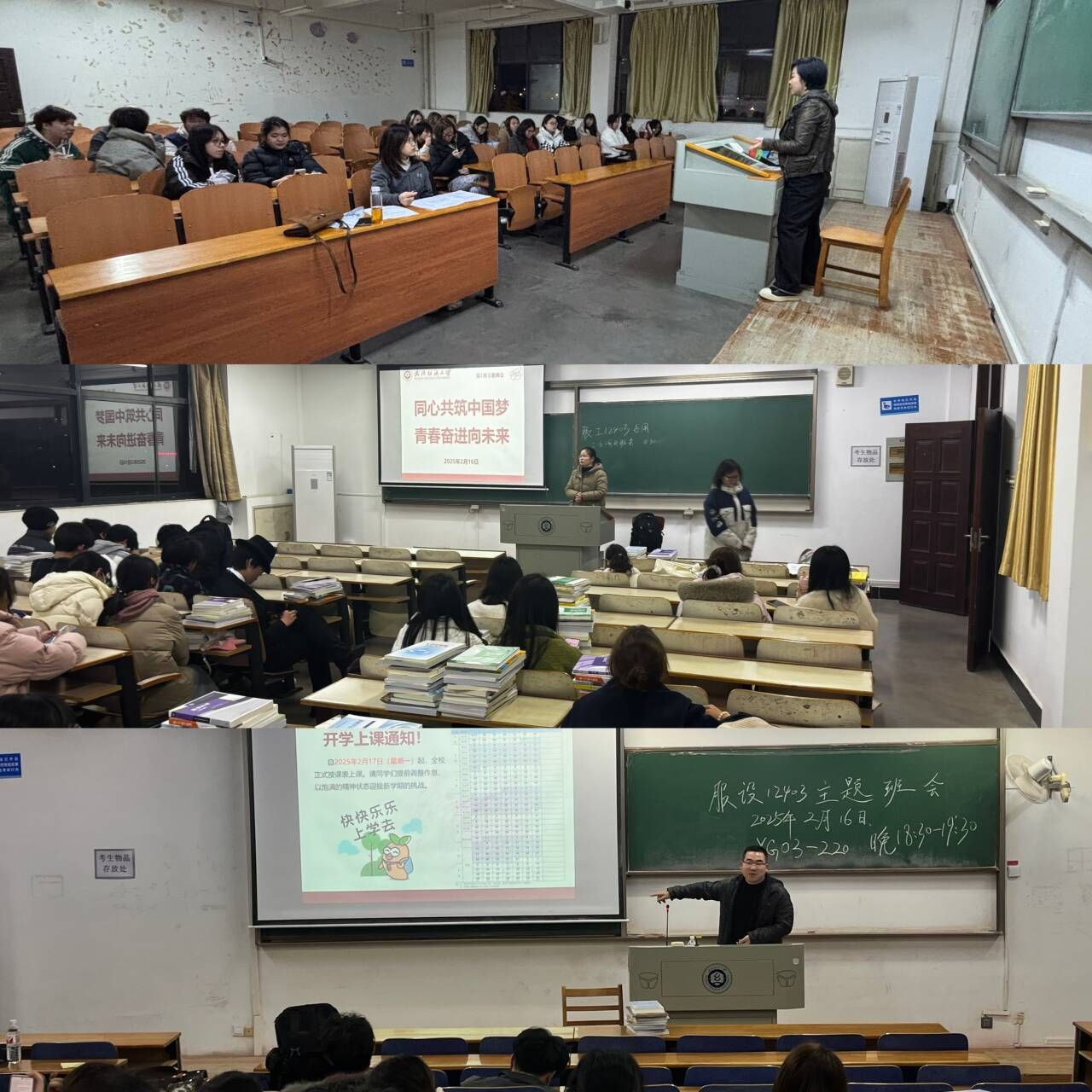 全体辅导员、班主任以主题班会的形式深入各班级组织召开晚点名,摸清学生底数,掌握学生返校情况,了解学生状态,开展了以“同心共筑中国梦 青春奋进向未来”为主题的主题班会和开学第一课。学院师生齐聚一堂,共同回顾过往成就,展望发展蓝图,为新学期注入奋进力量,以昂扬的斗志开启新一年的奋斗征程。