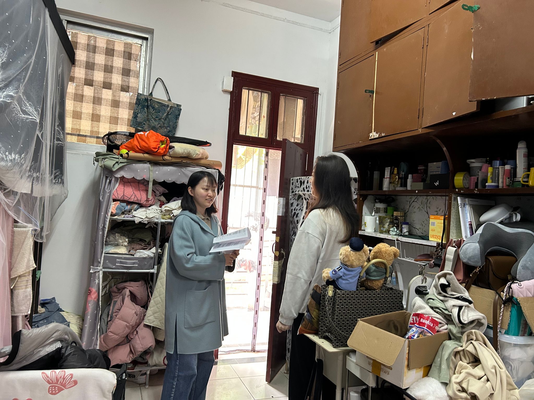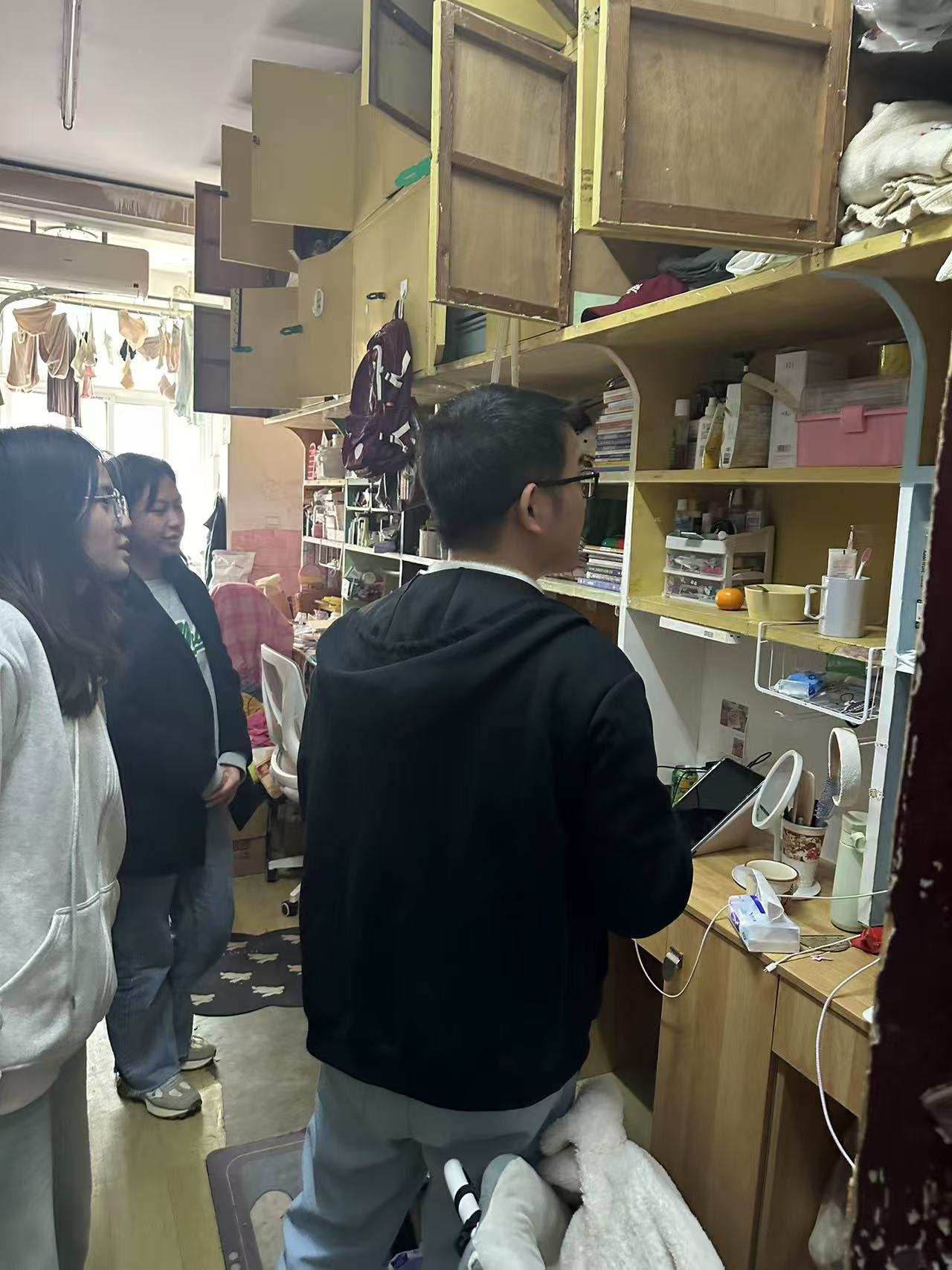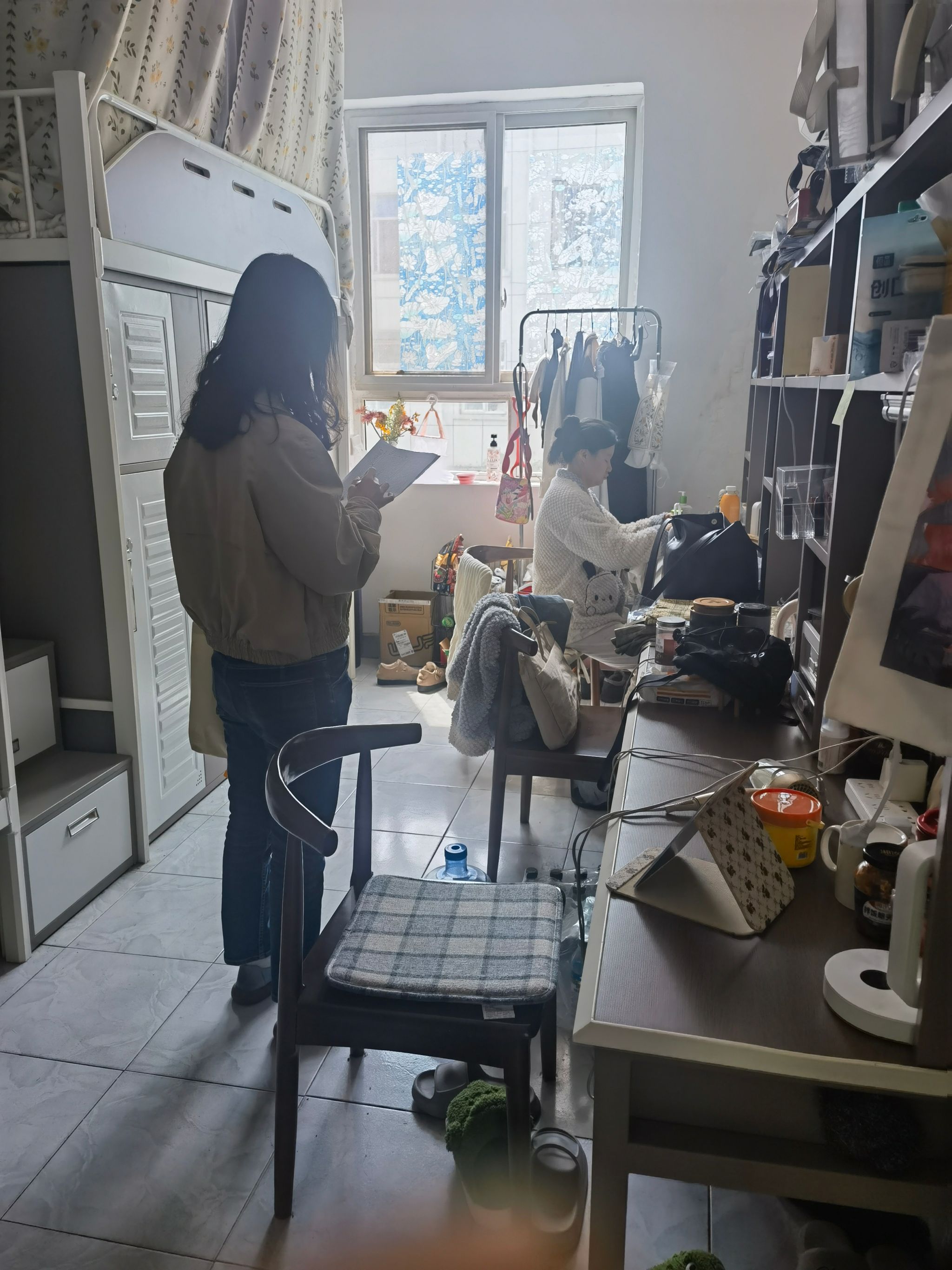 检查过程中,老师们与学生干部深入每间宿舍,重点查看了卫生清洁、用电安全及物品摆放情况。大部分宿舍表现良好,地面干净整洁,个人物品分类有序。对于个别存在问题的宿舍,检查组当场提出整改意见,并叮嘱学生注意用电安全,杜绝使用违规电器。联合检查组还现场讲解了衣物和面料的收纳技巧,帮助同学们更高效地整理宿舍。