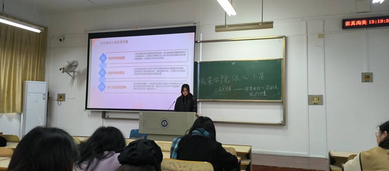 心理工作站"依心小屋"在综合楼5109举办三月份心理朋辈团辅活动,心理工作站指导老师高梓超、心理站学生干部和30余名班级心理委员以“探索女性心灵的无限力量”为主题展开讨论。活动聚焦女性在科技、艺术、政治等领域的独特优势,深入探讨其凭借情感智慧、创新思维与坚韧精神所展现的社会价值与个人成长。