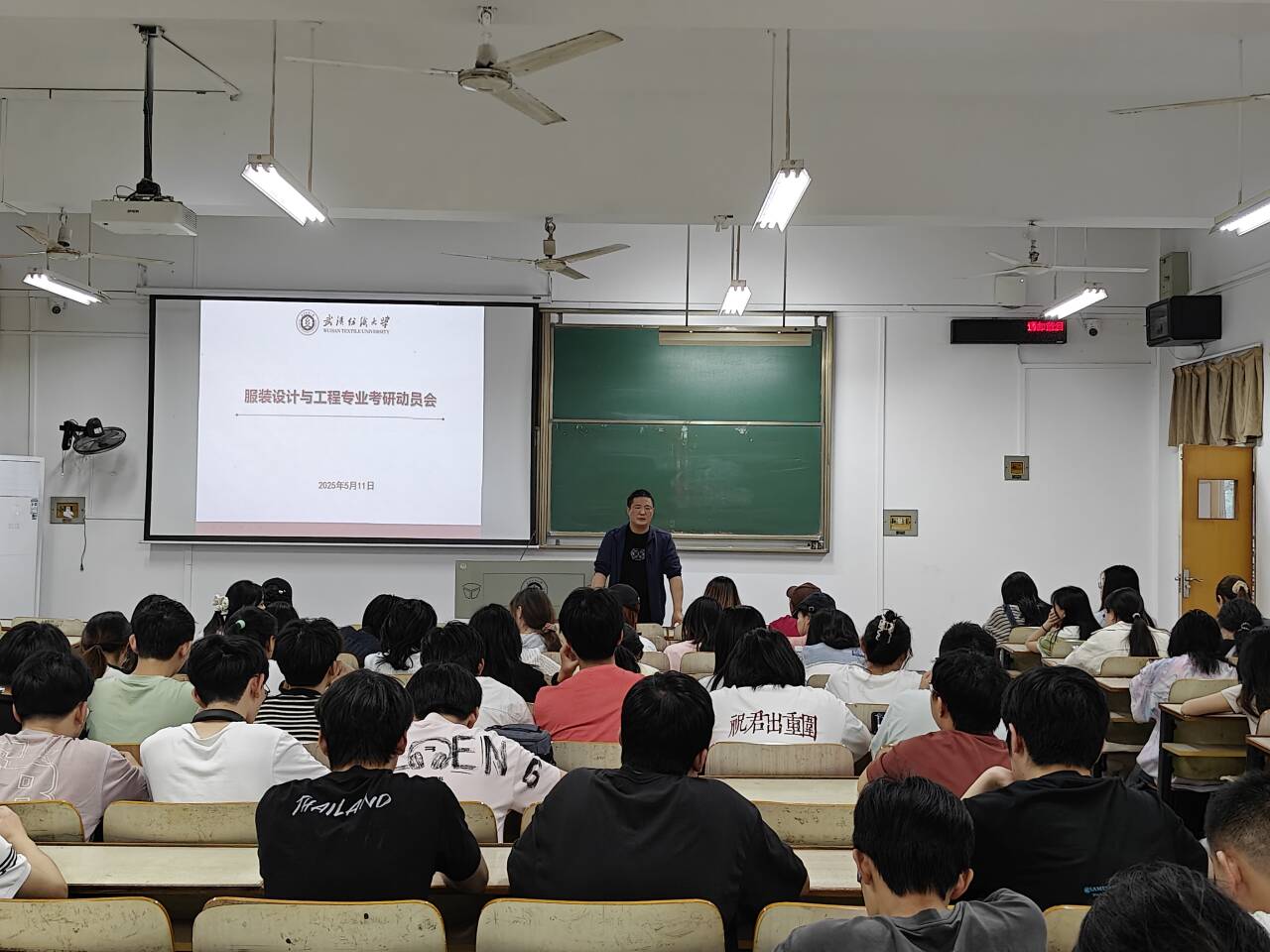 江学为还重点介绍了本校服装设计与工程专业的建设与发展前景。他表示,学院近年来持续推进专业和学科建设,依托科研平台及师资团队为研究生培养提供了坚实的科研支撑。针对学生提出的问题,江学为逐一解答,并结合成功案例提出建议。参会学生王悦涵表示:"通过参加本次考研动员会,自己不仅清楚了专业发展方向,更是对备考规划有了全新认识。"
