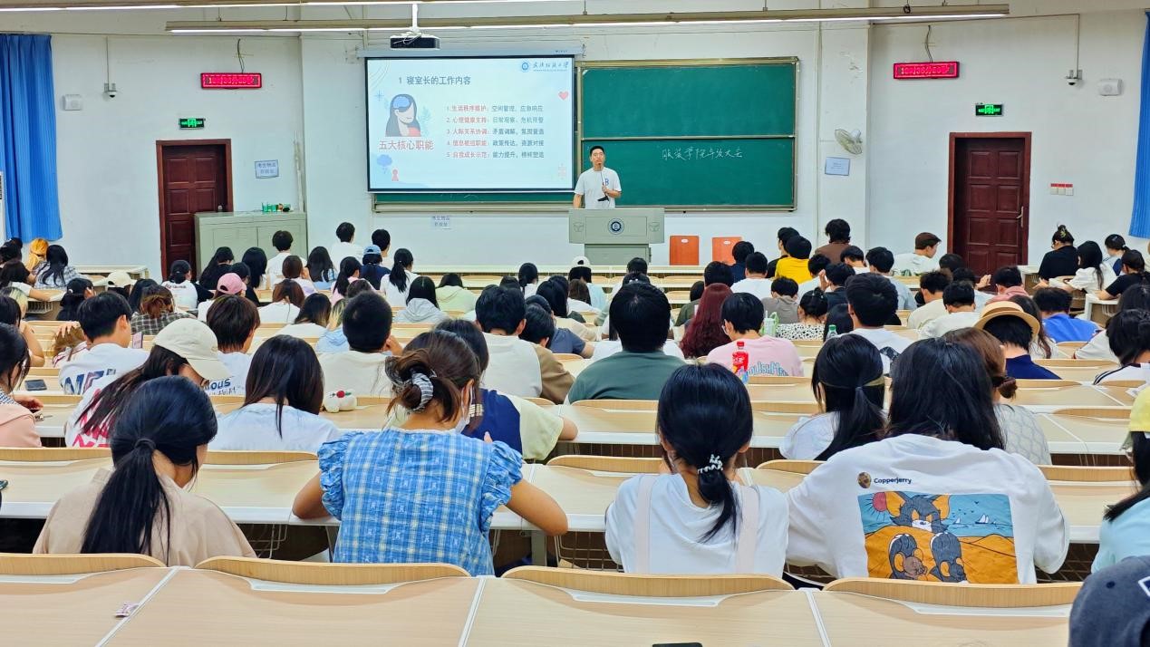 在YG03-T202召开2024级心理委员、寝室长护航能力提升培训暨年级大会,本次活动由2024级辅导员熊亚雄主持,全院2024级学生参加了此次活动。