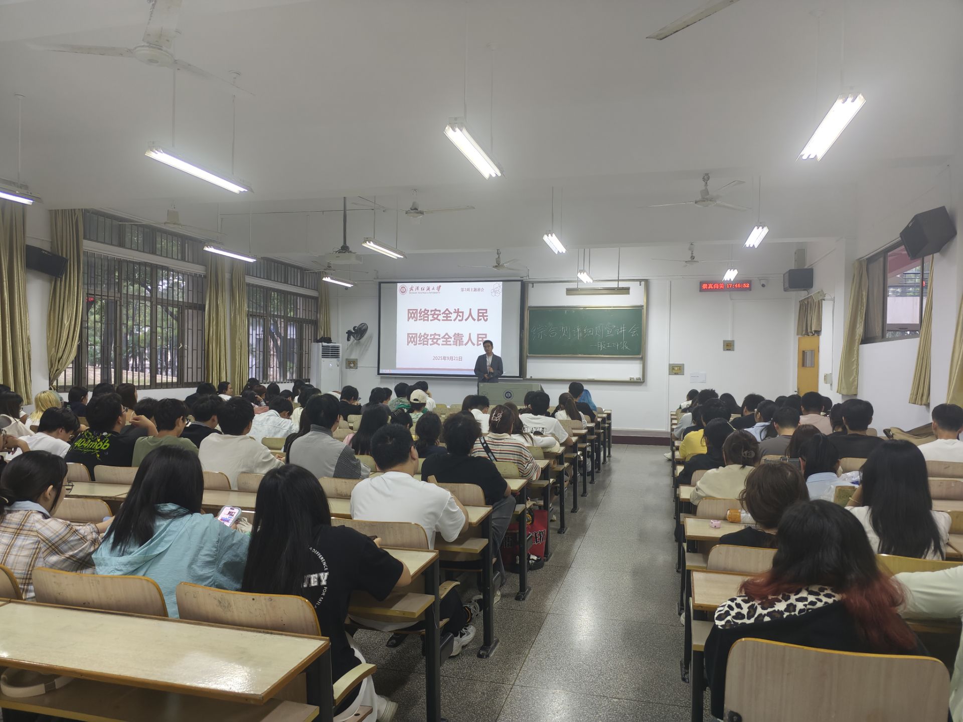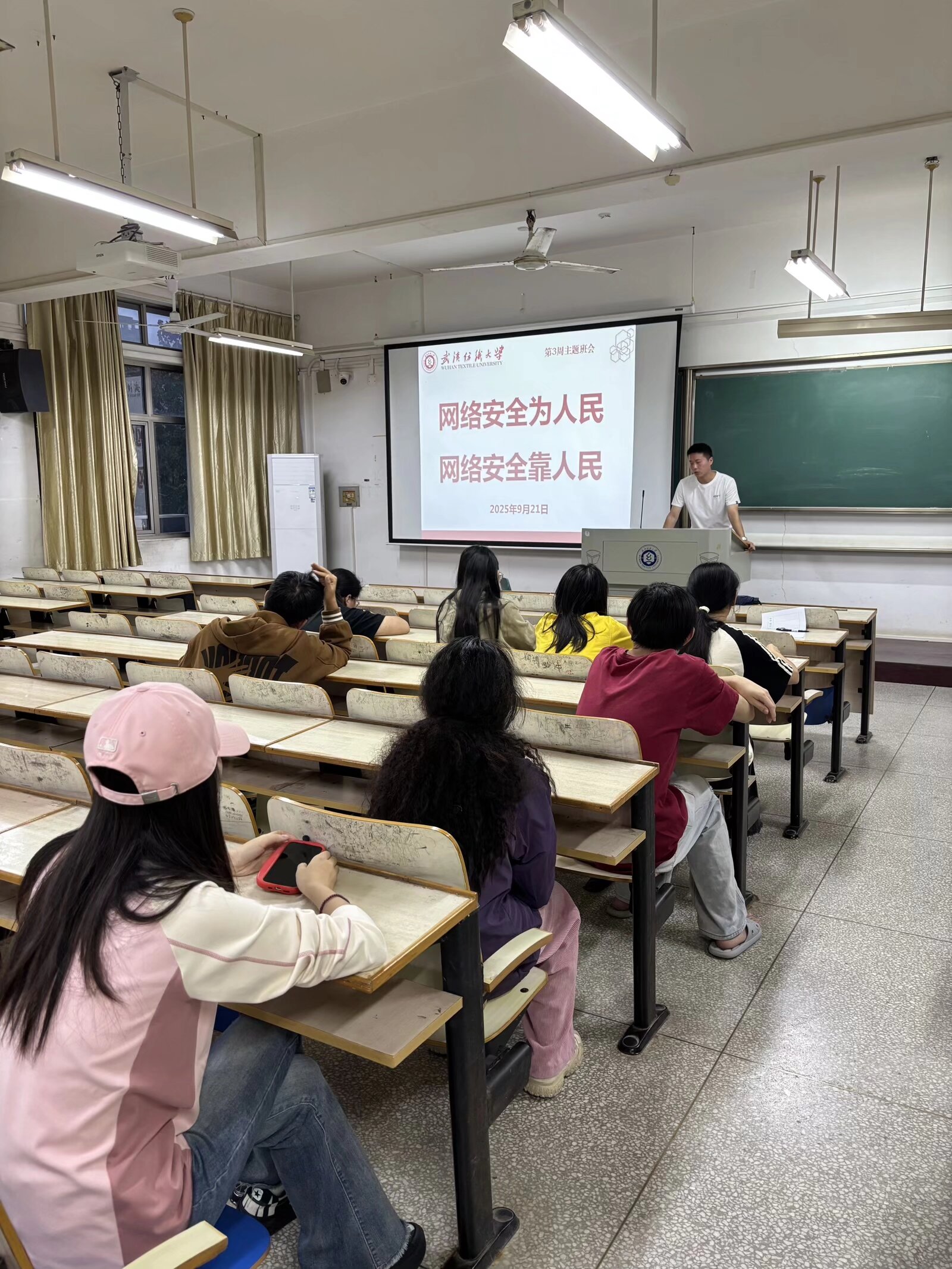 随后,各班级围绕 “网络安全为人民、网络安全靠人民” 主题开展专题教育。各班辅导员、班主任通过讲解网络诈骗典型案例、普及个人信息保护技巧等方式,引导学生树立正确网络安全观,切实提升防范意识与自我保护能力,助力营造安全、健康、文明的校园网络环境。