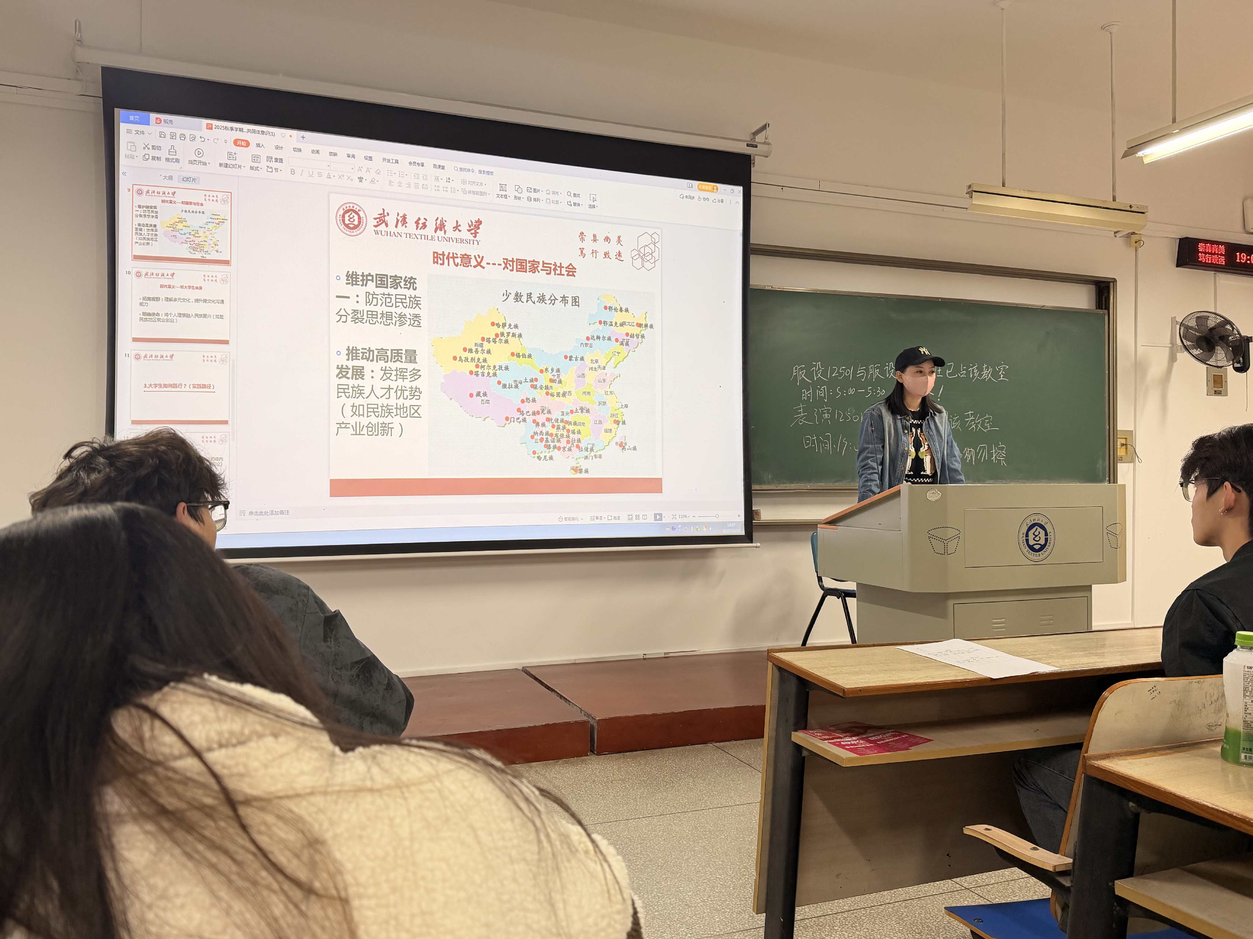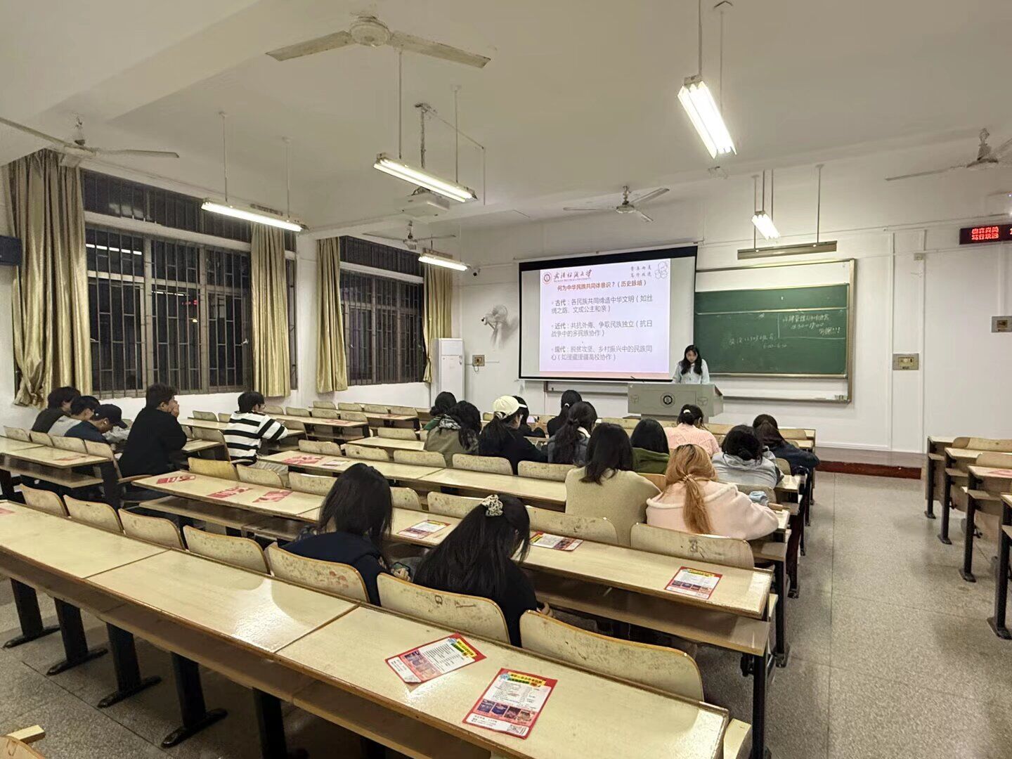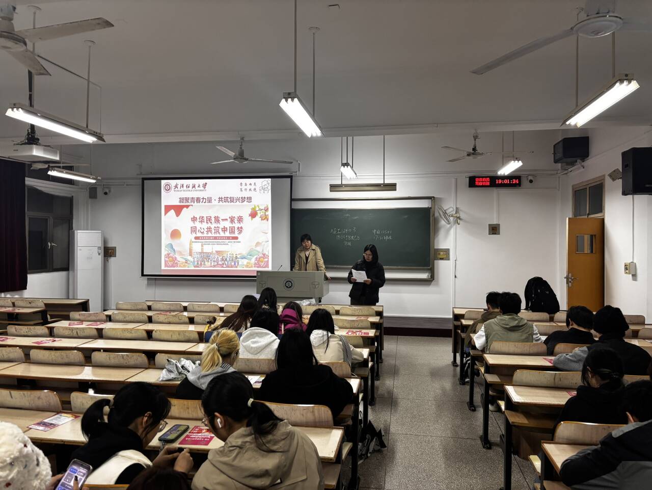 随后,“铸牢新时代大学生中华民族共同体意识”主题教育环节有序展开。各班通过案例讲解、互动讨论等形式,引导学生深入理解“五个认同”内涵,鼓励学生将强国信念与民族团结意识融入日常学习生活,实现内化于心、外化于行。同时,班会同步开展“校园电动自行车综合治理”专题教育,重点强调电动自行车骑行安全、停放规范及消防安全隐患防范,号召全体学生共同维护文明有序的校园环境。