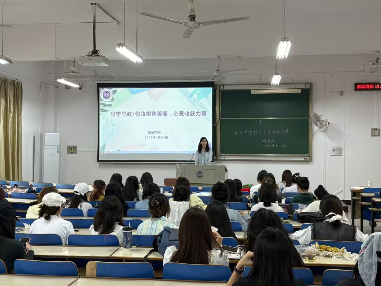 在综合楼109教室成功举办“化妆重塑魅力,心灵收获力量”导学思政活动,德育导师周卉副教授、研究生辅导员夏菡以及50余名研究生共同参与。本次活动以化妆艺术为载体,通过知识传授、创意实践与心理建设相结合的方式,助力青年学子塑造外在形象与内在自信的双重成长。
